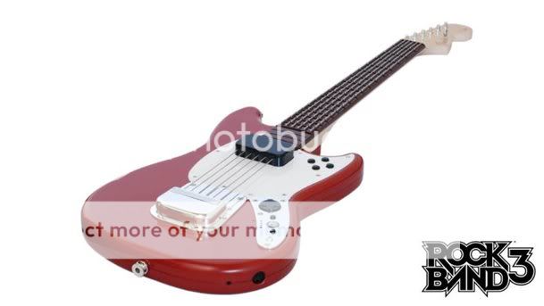 Ο ρεαλισμός στα παιχνίδια μουσικής βρίσκεται φέτος στο αποκορύφωμά του. Με μία αποκάλυψη βόμβα (όσον αφορά τα rhythm games), το MTV Games έφερε κοντά μας το πιο ρεαλιστικό παιχνίδι στο είδος, με νέα κιθάρα και προσθήκη keyboard! Η κιθάρα που αναπτύχθηκε ειδικά για το Rock Band 3 είναι η κλασική Fender Stratocaster, μόνο που για πρώτη φορά δεν διαθέτει πλαστικά κουμπάκια, αλλά κανονικές χορδές, με τις οποίες πρέπει να παίξετε όλα τα τραγούδια. Ο πιο κοινός ορισμός είναι ο εξομοιωτής κιθάρας, αφού η χρήση της είναι εφάμιλλη της πραγματικής, με το λαιμό να αποτελείται από 17 τάστα!