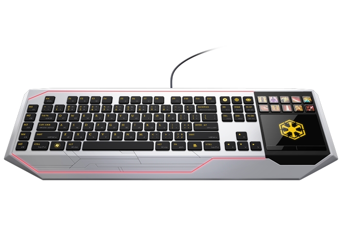 Εάν ενθουσιαστήκατε από το παραπάνω χαρακτηριστικό, αλλά από την άλλη δεν χρειάζεστε καινούριο laptop ή πιθανότατα δεν έχετε τα περίπου 2000-3000 ευρώ που ζητάει η Αμερικανική εταιρία, ξεχάστε την οθόνη, προσθέστε και μια δόση από Star Wars: The Old Republic και...voila! Έχετε μόνο το keyboard μαζί με την LCD οθόνη. Για τους φανατικούς λοιπόν των Star Wars, πέρα από το πληκτρολόγιο υπάρχει και mouse, το mousepad αλλά και σετ ακουστικών, όλα στο ίδιο Star Wars μοτίβο. Εμείς έχουμε στην διάθεση μας -και θα σας παρουσιάσουμε- το πληκτρολόγιο και το ποντίκι της εν λόγω σειράς.