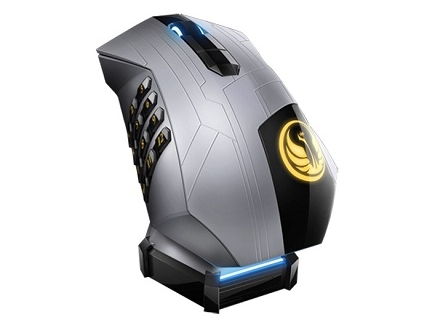 Το ποντίκι, όπως και το πληκτρολόγιο, έρχεται σε μια εντυπωσιακή συσκευασία, γεμάτη με τα λογότυπα του Star Wars: The Old Republic. Στην προκειμένη περίπτωση, εκτός από το ποντίκι θα βρείτε μέσα της και ένα αρκετά μακρύ και ποιοτικό καλώδιο usb, την ειδικά διαμορφωμένη βάση φόρτισης (και αυτή επηρεασμένη από τον κόσμο του Star Wars) όπως επίσης και τα λογότυπα των Empire και Republic, για να διαλέξετε εσείς ποιο θέλετε επάνω στο ποντίκι. Να αναφέρουμε εδώ ότι το λογότυπο μαζί με τα 12 πλευρικά κουμπιά αλλά και την ροδέλα είναι τα μόνα φωτιζόμενα σε ολόκληρο το ποντίκι. Μάλιστα στη ροδέλα έχετε την επιλογή μέσω του ειδικού software που το συνοδεύει, να βάλετε όποιο χρώμα επιθυμείτε.