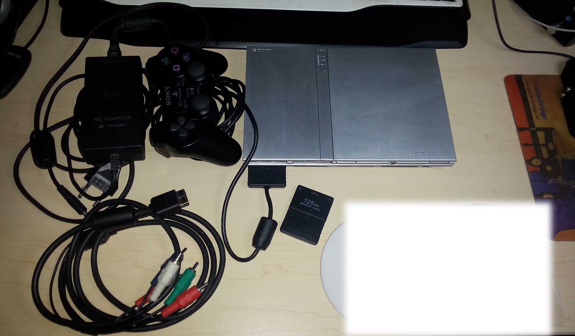 Πωλείται ps2 slim ασημί με τα καλώδια του.