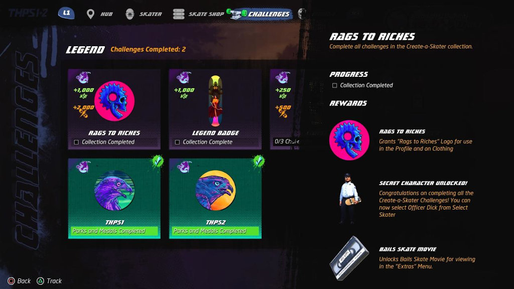 Πάντως για να ξεκλειδώσετε τον Officer Dick-Jack Black θα πρέπει να υπερβάλλετε λίγο εαυτόν. Θα πρέπει να ολοκληρώσετε και τα 24 challenges στο Created Skater. Με την ολοκλήρωσή τους, o Black θα είναι επιλέξιμος στο Skater menu.