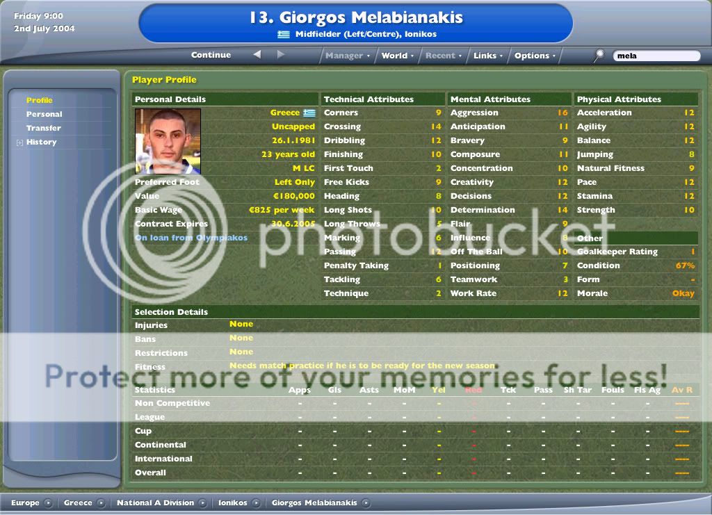 Το προφίλ του Γιώργου Μελαμπιανάκη στο Football Manager 2005