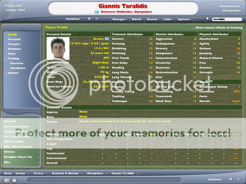GW: Πως κρίνεις το γεγονός ότι στο ελληνικό πρωτάθλημα στο Football Manager 2006 ο Ολυμπιακός σε πουλάει από το ξεκίνημα; Αυτό συνήθως γίνεται με τους παίκτες που έχουν τα πιο χαμηλά στατιστικά σε κάποια συγκεκριμένη θέση.