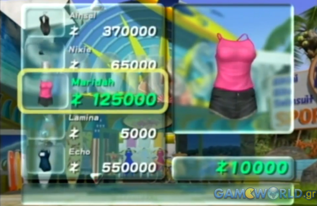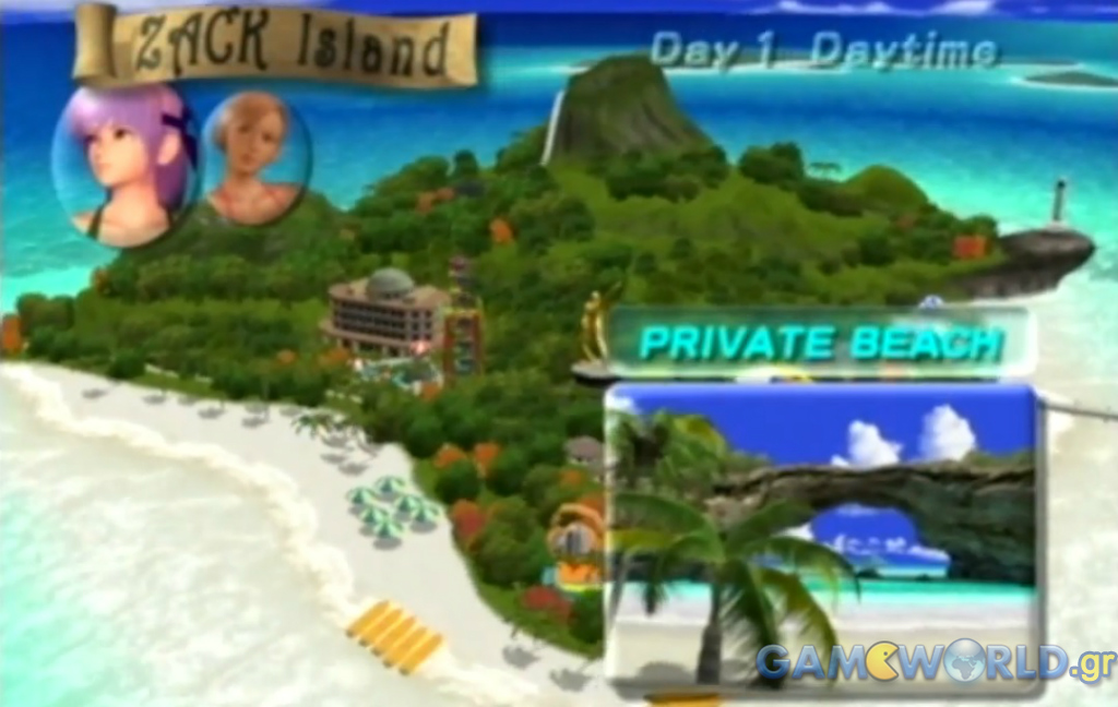 Κάθε αντικείμενο κοστίζει, οπότε προτείνεται να ξοδεύετε τα Zack Dollars σας με σύνεση αρχικά. Σε αυτό το σημείο να προσθέσουμε ότι δε μπορείτε να περιηγηθείτε στο νησί a la open-world. Οι περιοχές που μπορείτε να επισκεφτείτε εμφανίζονται με την μορφή εικονιδίων και επιλέγοντας ένα από αυτά, μεταφέρεστε στο αντίστοιχο μέρος αυτόματα και σας εμφανίζεται ένα μενού με της διαθέσιμες ενέργειες, όπως να ξεκινήσετε έναν αγώνα beach volley, να χαλαρώσετε ή να μιλήσετε με τους χαρακτήρες και να τους χαρίσετε ένα αντικείμενο της επιλογής σας.