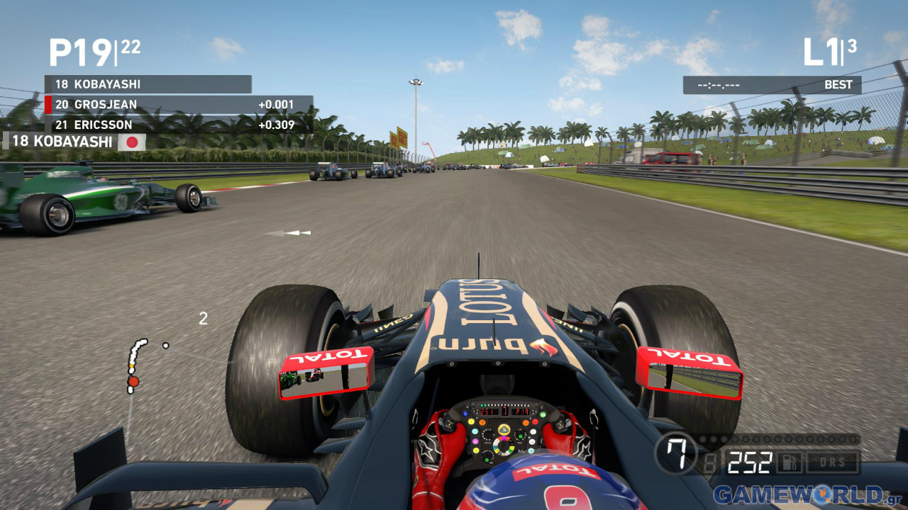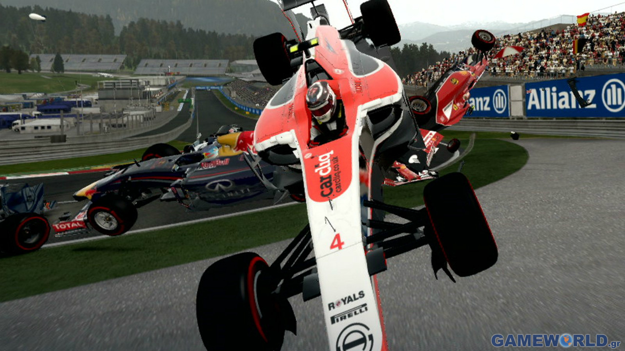 Επίσης, αυτό που μου έκανε αρνητική εντύπωση είναι το γεγονός ότι πολλές συγκρούσεις ήταν άψυχες με τα μονοθέσια να δίνουν την εντύπωση ότι είναι φτιαγμένα από... τους κοιλιακούς του Superman! Το collision με τα μονοθέσια των αντιπάλων σε πολλές περιπτώσεις δεν είχαν το σοβαρό αντίκτυπο που περίμενα, κρίνοντας από το γεγονός ότι στην πραγματικότητα τα οχήματα της Formula One είναι δεόντως εύθραυστα. Αν και περιλαμβάνεται damage model, ένιωθα ότι μπορούσα να οδηγήσω περισσότερο επικίνδυνα, ξεχνώντας πολλές φορές κάθε είδους gentleman racing. Βέβαια, αν προσπαθήσετε να παίξετε με την λογική των... Destruction Derby σίγουρα δε θα την βγάλετε καθαρή, αλλά μπορείτε να χωθείτε σφήνα ανάμεσα στα υπόλοιπα οχήματα περισσότερο από ότι στο παρελθόν.