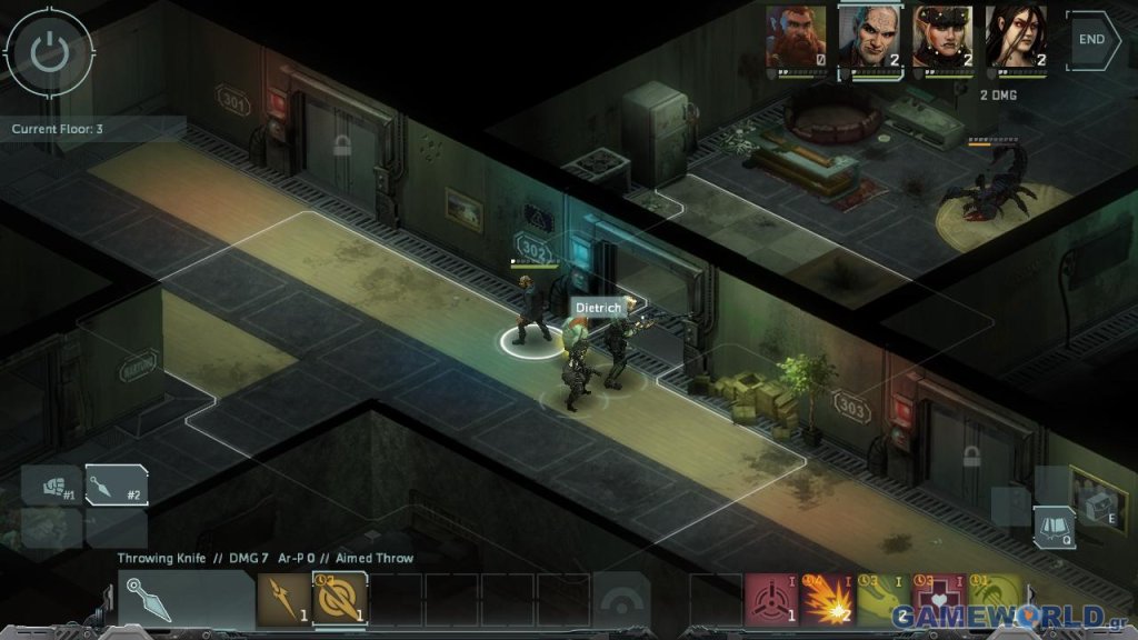 Στο PDA του ήρωα βλέπετε τα στατιστικά, τον εξοπλισμό και τα επόμενα objectives που έχει αναλάβει. Εκεί παρατήρησα ένα μικρό bug: όταν διαβάζετε σε υπομνήματα ή σας δίνει ένας NPC κωδικούς για το άνοιγμα θυρών και την πρόσβαση στο matrix, οι κωδικοί καταχωρούνται αυτόματα στο PDA για να μην πρέπει να τους αποστηθίσετε. Δυστυχώς σε κάποιες περιπτώσεις αυτό δεν συνέβη, αναγκάζοντας με να ξαναγυρίζω… πενήντα οθόνες πίσω για να βρω το άτομο ή το υπόμνημα που το ανέφερε!