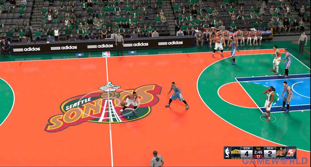 Φέτος λοιπόν, ευχαριστώ την Visual Concepts που μας προσφέρει το «επικό» Team Relocation. Πολύ απλά, αυτό σημαίνει ότι μπορείτε να μεταφέρετε την ομάδα που έχετε επιλέξει σε κάποια άλλη πόλη των Η.Π.Α. (είτε σε κάποια που έχει ήδη ομάδα είτε όχι), επιλέγοντας από τις διάφορες διαθέσιμες. Και όχι μόνο αυτό, αλλά μπορείτε να αλλάξετε το logo της ομάδας, το όνομά της, να σχεδιάσετε την νέα φανέλα της, μέχρι και να custom-άρετε το γήπεδό σας! Χάρη σε αυτή την επιλογή, κατάφερα επιτέλους να αποδώσω δικαιοσύνη (για όσους ξέρουν!), μεταφέροντας τους Oklahoma City Thunder πίσω στο Seattle, αναβιώνοντας την ιστορική ομάδα των αγαπημένων από τα 90s SuperSonics και σχεδιάζοντας τη νέα εμφάνιση και το γήπεδό τους. Για του λόγου το αληθές, συνοδεύω το παρόν review με ορισμένα screenshots για να μπείτε στο κλίμα.
