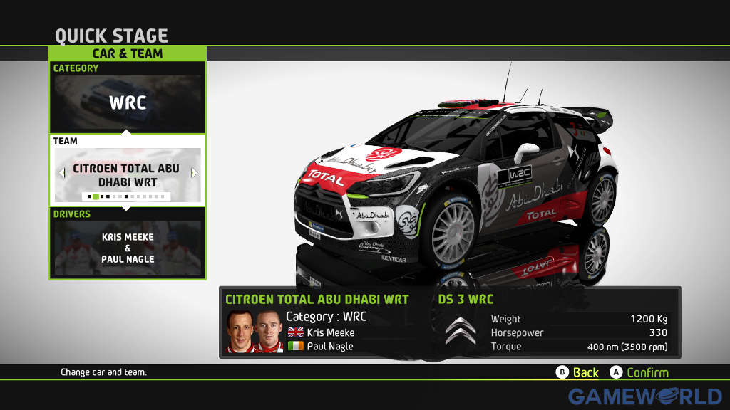 Αφού λοιπόν δημιουργήσετε τον οδηγό σας ξεκινάτε την καριέρα σας από την χαμηλότερη κατηγορία (WRC-J). Στην περίπτωση που όλα εξελιχθούν ιδανικά μέσα σε τρεις σεζόν, μία στο WRC-J, μία στο WRC-2 και μια στο WRC, είναι εφικτό να κατακτήσετε το πρωτάθλημα και να εκθρονίσετε τον Sebastien Ogier. Για τους αμύητους να προσθέσουμε ότι ο Ogier συνεχίζει την δυναστεία που ξεκίνησε ο Sebastien Loeb στο WRC, καθώς από το 2004 μέχρι και σήμερα το πρωτάθλημα πηγαίνει σε γαλλικά χέρια. Στην αρχή της κάθε σεζόν καλείστε να επιλέξετε την ομάδα σας. Φυσικά κάθε ομάδα σας δίνει πρόσβαση σε ένα διαφορετικό αμάξι, αλλά η αλήθεια είναι ότι στην πράξη είτε επιλέξετε το Volkswagen Polo R WRC, είτε το Citroen DS 3 το αποτέλεσμα θα είναι το ίδιο, καθώς οι μόνες διαφορές μεταξύ των οχημάτων εντοπίζονται στην ιπποδύναμη. Να σημειωθεί ότι στην κατηγορία WRC-J το μόνο διαθέσιμο αμάξι είναι το Citroen DS 3 R3-Max. Από εκεί και πέρα η οδηγική συμπεριφορά σας θα πρέπει να ταιριάζει με το mentality της ομάδας σας. Λόγου χάρη, κάποιες ομάδες δίνουν έμφαση στην νίκη με κάθε κόστος, κάτι που σημαίνει σε ελεύθερη μετάφραση ότι ακόμη κι αν κάνετε σμπαράλια το αμάξι σας δεν έχει σημασία αρκεί να τερματίσετε στις πρώτες θέσεις.