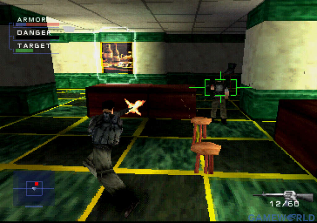 Στο Syphon Filter συναντάμε έναν πολύ ενδιαφέρον μηχανισμό καταλογισμού του damage που δέχεστε ή κάνετε. Όταν έρχεστε σε επαφή με κάποιον εχθρό ο οποίος έχει καλή οπτική επαφή μαζί σας θα παρατηρήσετε πως η μπάρα Danger αρχίζει και γεμίζει. Αυτό αντικατοπτρίζει το πόσο πολύ έχει καταφέρει αυτός ο εχθρός (ή οι εχθροί) να σας “κλειδώσει” στον στόχο του. Όταν η μπάρα έχει γεμίσει εντελώς τότε αρχίζετε να χάνετε πρώτα Armor και ύστερα Health. Το ίδιο ισχύει και για την μπάρα Target. Όταν κλειδώσετε τον στόχο σας πάνω σε κάποιο εχθρό και η μπάρα έχει γεμίσει αρκετά ξεκινάτε να του κάνετε damage. Γενικά όσο πιο γεμάτες είναι αυτές οι δύο μπάρες τόσο περισσότερο damage δέχεστε ή κάνετε. Το τελικό damage φυσικά συνυπολογίζεται και με τον τύπο όπλου που κρατάτε εσείς ή οι αντίπαλοι σας.