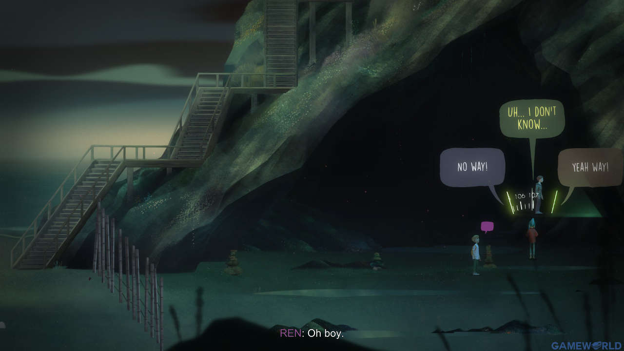 Ένα πολύ ωραίο χαρακτηριστικό του Oxenfree είναι ότι σας δίνεται για μερικά δευτερόλεπτα η επιλογή πολλαπλής απάντησης σε αυτά που συζητούν οι χαρακτήρες. Για παράδειγμα σε μια συζήτηση του Jonas με την Αλεξ, ο Jonas την ρωτάει αν τον θεωρεί χαζό, όποτε εμφανίζονται τρεις απαντήσεις για όλα τα γούστα και ανάλογα με το ποια θα επιλέξετε θα εξελιχθεί αντίστοιχα η συζήτηση. Αν απαντήσετε κάτι που δεν θα αρέσει στον Jonas, αυτός θα δυσαρεστηθεί και όσο θα περνάει η ώρα, αν συνεχίσετε να κάνετε πράγματα που δεν εγκρίνει, στο τέλος του παιχνιδιού η σχέση των δυο αδελφών δεν θα είναι και η καλύτερη. Σε μια άλλη σκηνή ο Jonas διαφωνεί με την νοοτροπία του Ren και εσείς καλείστε να πάρετε θέση, δυσαρεστώντας τον έναν ή τον άλλον ή κρατώντας ουδέτερη θέση αν θέλετε.