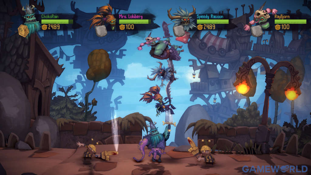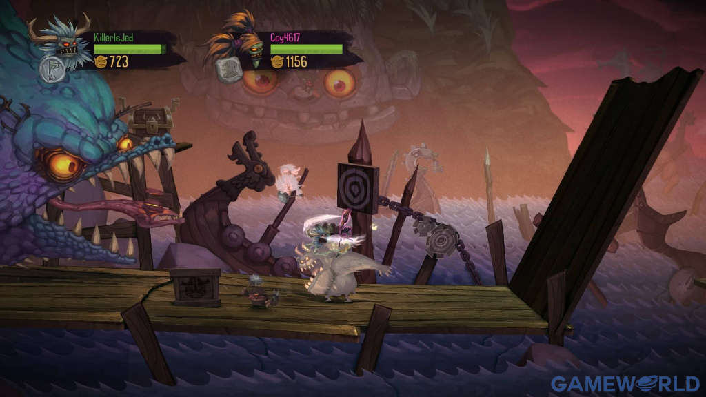 Να προσθέσουμε ότι πριν από κάθε level μπορείτε να καθορίσετε το loadout σας, το οποίο αποτελείται από ένα melee όπλο και ένα rune. Τα αντικείμενα αυτά μπορείτε να τα αγοράσετε με το gold που κερδίζετε στις μάχες ή να τα αποκτήσετε ως έπαθλο από την ολοκλήρωση των side quests. Συνολικά υπάρχουν περισσότερα από 40 διαφορετικά όπλα και αρκετοί ακόμη ρούνοι και μάλιστα κάθε όπλο έχει και διαφορετικές ιδιότητες. Για παράδειγμα, το Stinknir προκαλεί μικρότερο damage σε κάθε χτύπημα, αλλά δηλητηριάζει τους αντιπάλους σας οπότε με την πάροδο του χρόνου προκαλεί πρακτικά μεγαλύτερη ζημιά. Άλλα όπλα πάλι μπορούν να εκτοξεύσουν τους αντιπάλους σας στον αέρα ή έχουν knockback ιδιότητες.