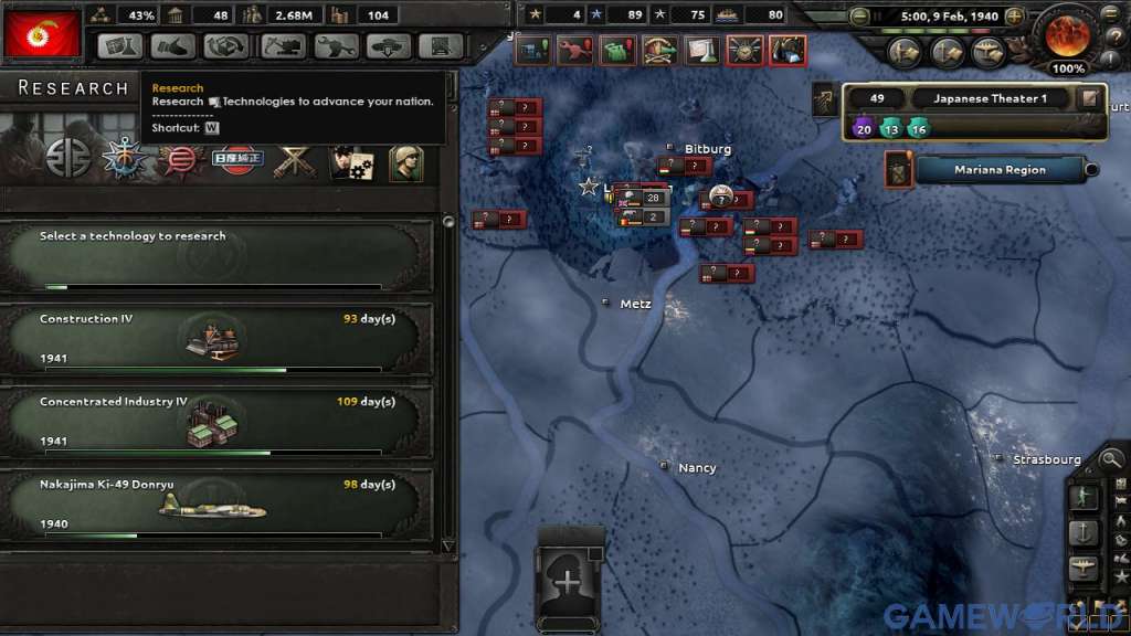 Το Hearts of Iron IV έχει το πληρέστερο technology tree που έχω δει ποτέ σε grand strategy. Όλοι οι τομείς του κράτους σας (στρατιωτικές δυνάμεις, βιομηχανία, τεχνολογία) διαθέτουν το δικό τους παρακλάδι από λαχταριστά icons που ενισχύουν σημαντικά τα στατιστικά του εκάστοτε τομέα και σας προτρέπουν να τα επιλέξετε. Φτάσαμε αισίως στην υπέρτατη πηγή ευχαρίστησης στο παιχνίδι που δεν είναι άλλη από το ξεψάχνισμα των τεχνολογιών, την σταδιακή επιλογή τους, την παρακολούθηση της μπάρας που δείχνει πόσος χρόνος απαιτείται για την απόκτηση τους και την ποσοστιαία ενίσχυση όλων των χαρακτηριστικών της αυτοκρατορίας σας.