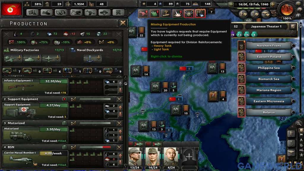 Σαν λάτρεις των strategy θα συμφωνήσετε ότι τίποτα δεν μας «ανάβει», δεν μας τέρπει όσο ο μεγάλος αριθμός. Στην οθόνη όπου κατασκευάζετε το υλικό για τα στρατεύματα σας οι αριθμοί φτάνουν σε αστρονομικά επίπεδα με πολλές διακυμάνσεις ανάλογα με τις ανάγκες του μετώπου. Η διαχείριση του υλικού είναι πολύ άνετη, απαιτεί μόνο σωστή κατανομή των εργοστασίων και μεταφορά τους από τις ανάγκες που καλύφθηκαν σε εκείνες που μένουν εκκρεμείς. Στην ίδια οθόνη μπορείτε να δημιουργήσετε παραλλαγές του υλικού ξοδεύοντας xp και να κατασκευάσετε όποια μονάδα έχουν ανακαλύψει οι επιστήμονες σας.
