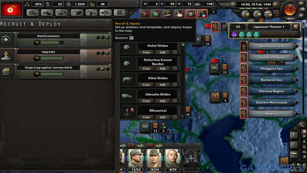 Τεράστιο ατού για το Hearts of Iron IV, ειδικά σε όσους από εσάς ασχολείστε με τα ιστορικά δρώμενα, είναι η παρουσία όλων των εγκληματικών… εμβληματικών προσωπικοτήτων της εποχής ήθελα να πω, των στρατηγών και του υλικού εξοπλισμού. Θα έχετε υπό τις διαταγές σας τον Χίτλερ, τον Στάλιν, τον Ρούζβελτ και τα υπόλοιπα «παιδιά» που ηγήθηκαν της πολεμικής προσπάθειας ενώ οι στρατιές σας θα διοικούνται από θρυλικές στρατιωτικές φιγούρες σαν τον Ρόμελ και τον Μοντγκόμερι. Χαράζοντας το πεπρωμένο όλων των παραπάνω και χειριζόμενοι όλο τον εξοπλισμό των αντιμαχόμενων κρατών μέχρι και τις πυρηνικές βόμβες, θα νοιώσετε πιο υπερήφανοι από ποτέ για τα κατορθώματα σας.