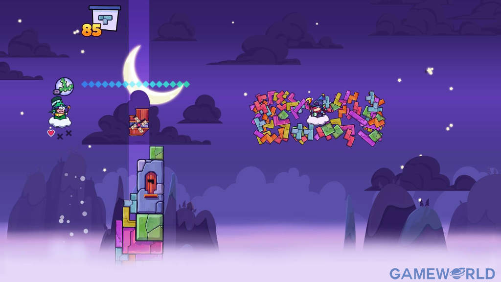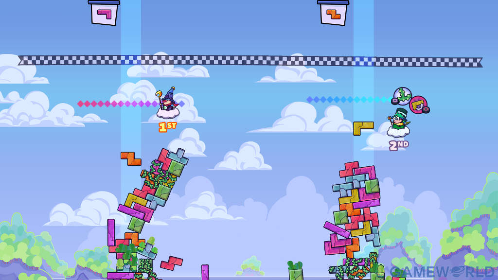 Για να μπορέσετε να αντιμετωπίσετε όλες αυτές τις παγίδες αλλά και τα requirements της κάθε αποστολής, έχετε μαζί σας τους Wizard οι οποίοι με τα spells τους μπορούν να σας σώσουν από δυσάρεστες καταστάσεις. Για να πάρετε ένα spell σε κάθε πίστα θα πρέπει ο πύργος σας πρώτα να φτάσει σε ένα συγκεκριμένο προκαθορισμένο ύψος. Τα spells βοηθούν κυρίως στο να επιτύχετε σταθερότητα στο κτίσμα σας. Ένα spell ονομάζετε Vines και ουσιαστικά κάνει ένα brick να βγάλει ρίζες και να φυτρώνει ενώνοντάς το με πολύ σταθερά δεσμά με τα τουβλάκια δίπλα του, ένα άλλο σας δημιουργεί ένα κενό αιωρούμενο κομμάτι γης για να τοποθετήσετε νέα bricks, ενώ το πιο χρήσιμο για εμένα spell είναι το Cement, το οποίο μετατρέπει ένα brick σε τσιμέντο κάνοντας το απόλυτα σταθερό. Όλα αυτά τα ξόρκια θα είναι ο άσσος στο μανίκι σας για τις single player πίστες αλλά και για το multiplayer. Μπορώ να πω πάντως, πως στον σχεδιασμό των physics και την αλληλεπίδραση με τα spells έχει γίνει υποδειγματική δουλεία. Όλα βασίζονται στο προσωπικό σας skill και δουλεία στο χτίσιμο.