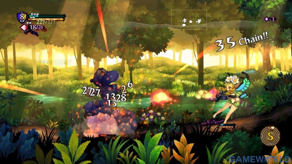 Γνωρίζω ότι πολλές φορές δεν θέλετε να σκέφτεστε ή να αναλύετε τα πράγματα, αντίθετα προτιμάτε να σπάζετε και να πυροβολείτε ότι ξεπεταχτεί μπροστά σας κραυγάζοντας από ικανοποίηση. Η πραγματική απόλαυση στο Odin Sphere Leifthrasir είναι ότι μπορείτε να τα κάνετε και τα δύο. Αν και ανήκει στα Action RPG, η πλάστιγγα γέρνει προς το action κομμάτι που δανείζεται στοιχεία από Beat ‘Em Up και Hack and Slash. Το έδαφος στον γενικό χάρτη είναι μοιρασμένο σε περιοχές οι οποίες υποδιαιρούνται σε ένα λαβύρινθο από οθόνες γεμάτες αντικείμενα, εχθρούς και πλανόδιους εμπόρους. Χάρη στην εξελιγμένη χαρτογράφηση των πάντων γνωρίζετε εκ των προτέρων τι σας περιμένει από οθόνη σε οθόνη ώστε να έχετε προετοιμαστεί κατάλληλα.