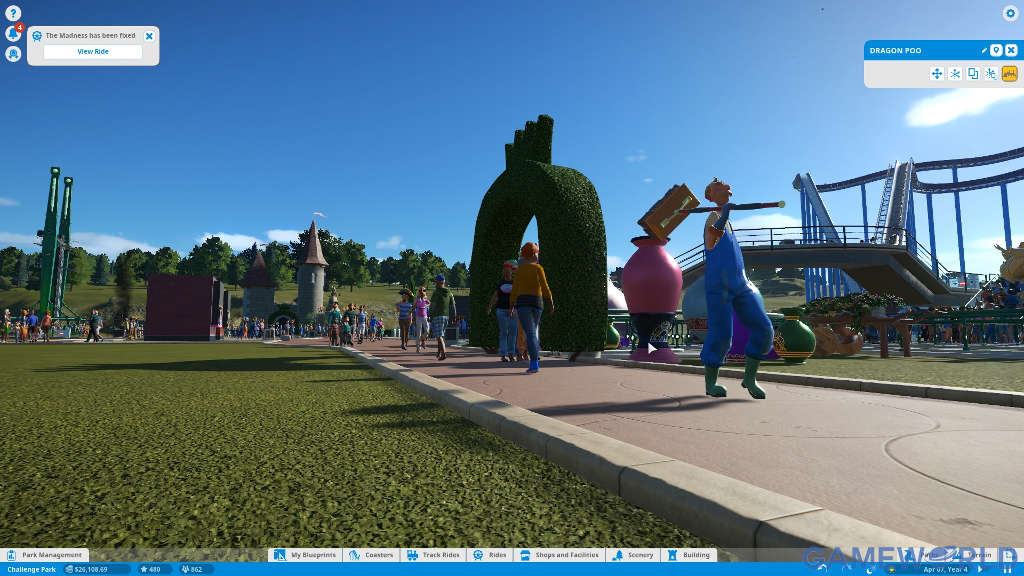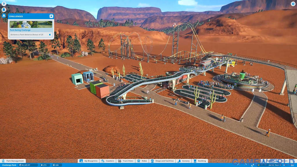 Ας τα πάρουμε από την αρχή, στο Planet Coaster αναλαμβάνετε το ρόλο του διαχειριστή ενός θεματικού πάρκου σε ένα από τα τρία διαθέσιμα modes: Challenge, Sandbox και Career. Αναλόγως με το mode στο οποίο θα παίξετε, καθορίζεται και ο εκάστοτε στόχος σας. Συγκεκριμένα, στο Challenge θα πρέπει να αναλάβετε τη διαχείριση κάποιου πάρκου και να πετύχετε συγκεκριμένους στόχους π.χ. προσέλευση 100 επισκεπτών, στο Career θα ξεκινήσετε από το μηδέν και θα πρέπει να κατασκευάσετε με απώτερο σκοπό την προσέλκυση επισκεπτών και τη βιωσιμότητα του πάρκου σας, ενώ στο Sandbox μπορείτε να κινείστε ελεύθερα χωρίς να σας περιορίζουν τα χρήματα.