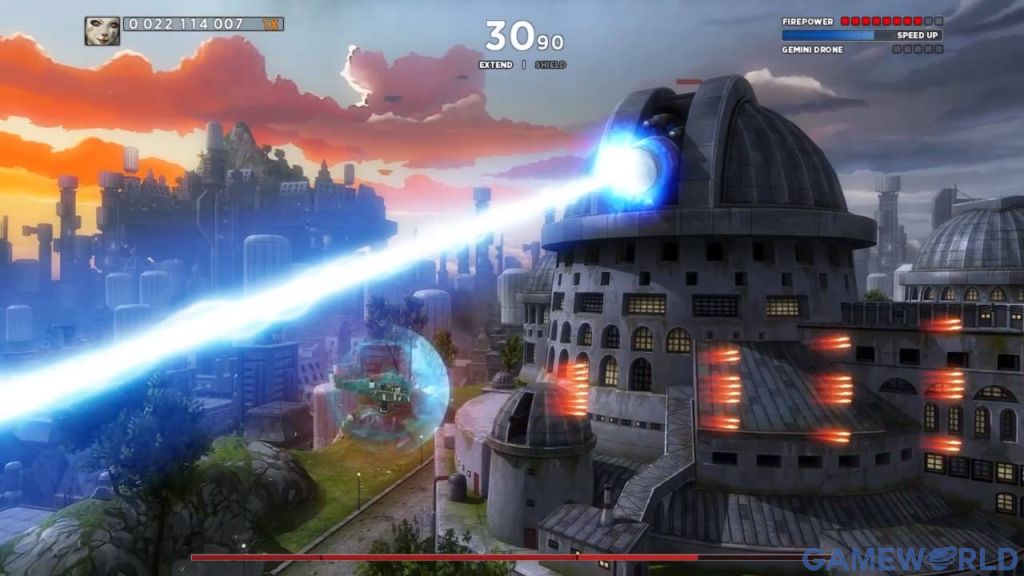 Η χαρά σας για το co-op mode θα μεταβληθεί σε ευτυχία διακρίνοντας τις βελτιώσεις σε γραφικά και ήχο. Με φουλ υποστήριξη 4K αναλύσεων και frame rate που αρνείται πεισματικά να πέσει κάτω από τα 60 frames ο αγώνας σας μεταβάλλεται σε ένα από τα εντυπωσιακότερα Shoot ‘Em Up των τελευταίων χρόνων. Τα bosses είναι γιγαντιαία, πανέμορφα σχεδιασμένα, καλύπτουν συνήθως το μεγαλύτερο τμήμα της οθόνης, διαθέτουν πρωτοκλασάτο animation και αστεία ονόματα.