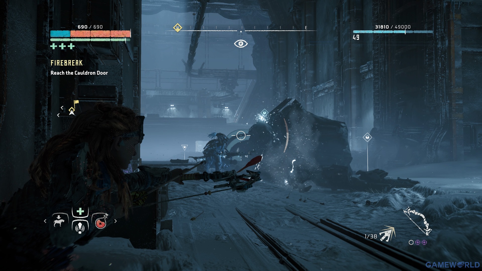 Στο The Frozen Wilds η δυσκολία ανεβαίνει, καθώς έχουμε ορισμένους πιο ισχυρούς εχθρούς, ενώ τώρα αντί για την corrupted υπόσταση συναντάμε τα control towers. Πρόκειται για πύργους που παράγουν μία aura μωβ χρώματος η οποία buffάρει όσες μηχανές βρίσκονται κοντά του. Συνεπώς θα πρέπει να βρείτε τρόπο να το πλησιάσετε (προφανώς μέσω stealth) και να το καταστρέψετε ειςάγοντας το δόρυ σας. Μετά οι εχθροί θα αντιμετωπίζονται πολύ πιο εύκολα.