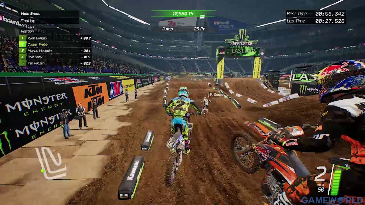 Το Monster Energy Supercross παρέχει δώδεκα αληθινές διαδρομές και είκοσι δύο πραγματικούς οδηγούς –οι οποίοι δεν διαφέρουν καθόλου ως προς την απεικόνισή τους- καθώς και δύο βασικές κατηγορίες κυβισμού των μοτοσυκλετών, τις 250 και 450SX. Λόγω της ονομασίας του τίτλου να είστε προετοιμασμένοι ψυχολογικά για κάτι λίγο ενοχλητικό. Διαφημίσεις και μάλιστα μπόλικες διαφημίσεις οι οποίες “εισχωρούν” στον οργανισμό σας και σίγουρα θα σας κάνουν να αναζητήσετε ένα Monster για να σας ξεδιψάσει. Τουλάχιστον, ο γράφων επηρεάστηκε και το έκανε.