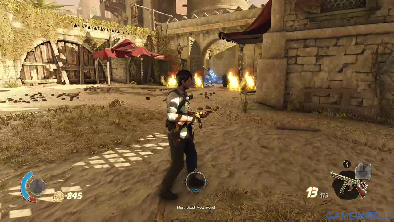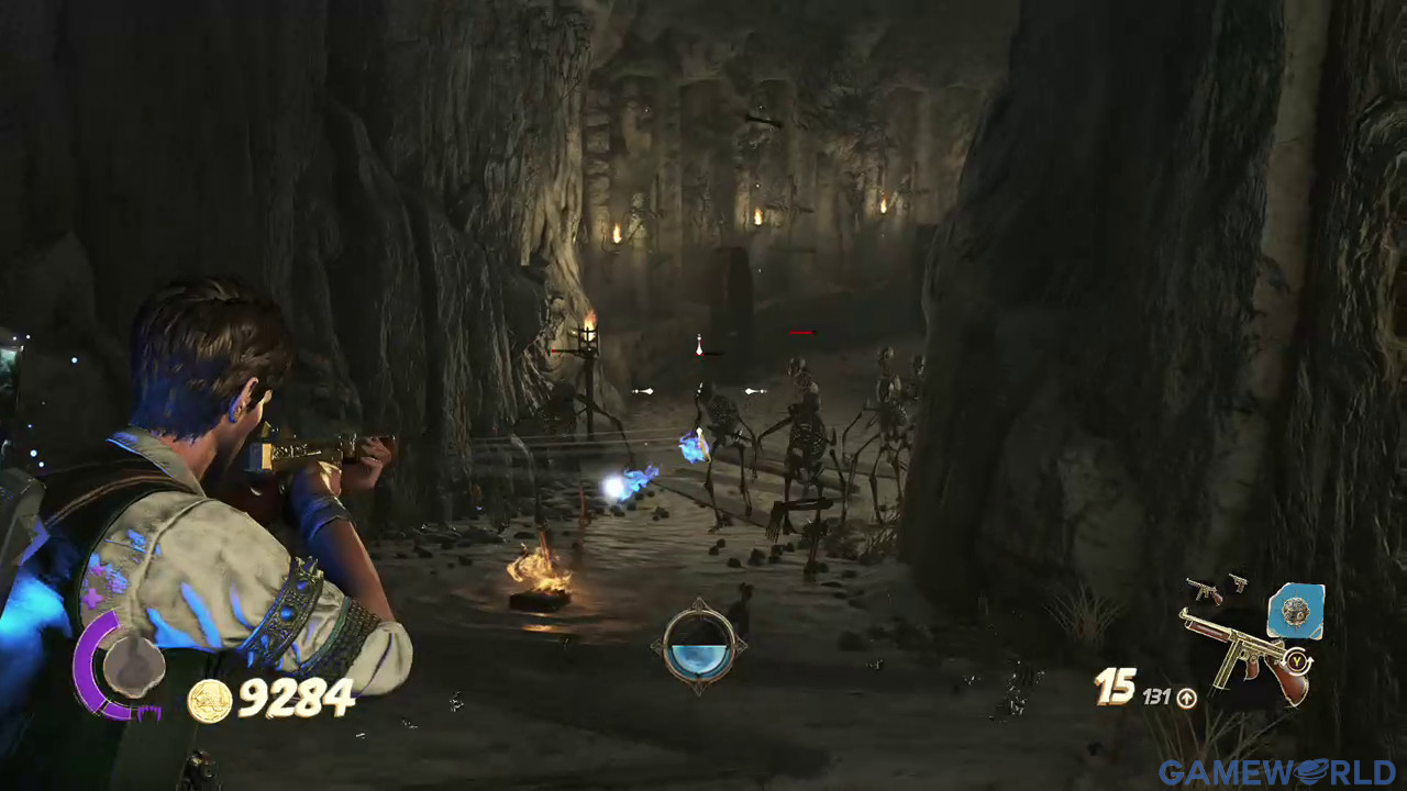 Από τα όπλα μας αρέσουν ιδιαίτερα τα αυτόματα για να θερίζουμε με τις ριπές μας τις αντίπαλες ορδές και ας έχουν χαμηλό accuracy. Το δίκαννο είναι πολύ αποτελεσματικό σε κοντινή απόσταση και μας ενθουσιάζει να κάνουμε σκόνη μια ομάδα απέθαντων με μια μπαταριά. Οι καραμπίνες διακρίνονται για την ευστοχία τους και είναι τέλειες όταν θέλουμε να κόψουμε μακρινούς στόχους. Τα πιστόλια με τις άπειρες σφαίρες και το χαμηλό damage είναι για να σπάζουμε κιούπια, αγαλματίδια και να ενεργοποιούμε παγίδες. Επειδή όλα στην ζωή πληρώνονται, τα καλύτερα όπλα του οπλοστασίου μας κοστίζουν χρυσά νομίσματα και τα βρίσκουμε σε ειδικά μπαούλα στον δρόμο. Πωρωθήκαμε σιγοψήνοντας ένα μπουλούκι τεράτων με το φλογοβόλο, απολαύσαμε την εξολόθρευση των bosses με τα εκρηκτικά βέλη της βαλλίστρας, γελάσαμε σκορπίζοντας τα κόκαλα των σκελετών με το αρκεβούζιο.