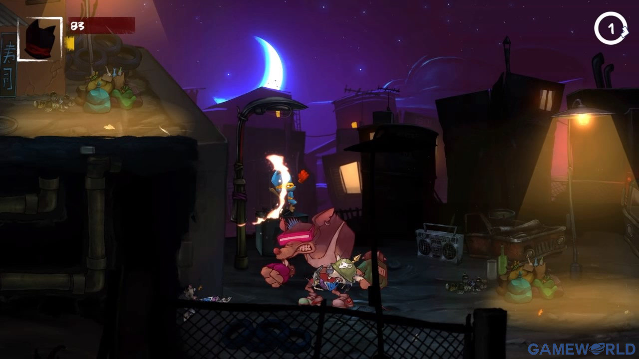 Αφού θαυμάσαμε τις “ρεαλιστικές” δυνάμεις της γάτας μας, δώσαμε βάση και στις υπερφυσικές της κινήσεις. Το uppercut είναι πολύ ισχυρότερο από τις νυχιές και τινάζει τους εχθρούς δέκα μέτρα στον αέρα. Με ένα άλμα και δεύτερο uppercut στους αιθέρες, ο αντίπαλος μετατρέπεται σε φλεγόμενο... μετεωρίτη που σκάει στο έδαφος με μανία και συντρίβει ότι χτυπήσει. Το εξαιρετικό game mechanic που περιγράφουμε μας άρεσε εξίσου με το dash attack. Προξενεί μεγάλο damage, βγάζει από το κάδρο επικίνδυνους εχθρούς μειώνοντας τον αριθμό των όσων αντιμετωπίζουμε ταυτόχρονα. Έχει κατευθυντικότητα δηλαδή μπορούμε να ρίξουμε τον φλεγόμενο εχθρό σαν σφαίρα σε ευθεία γραμμή, διασπώντας μια ομάδα από εχθρούς.