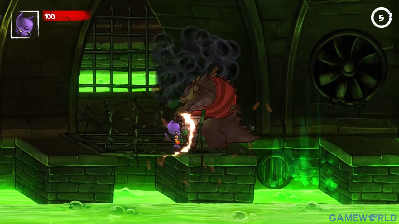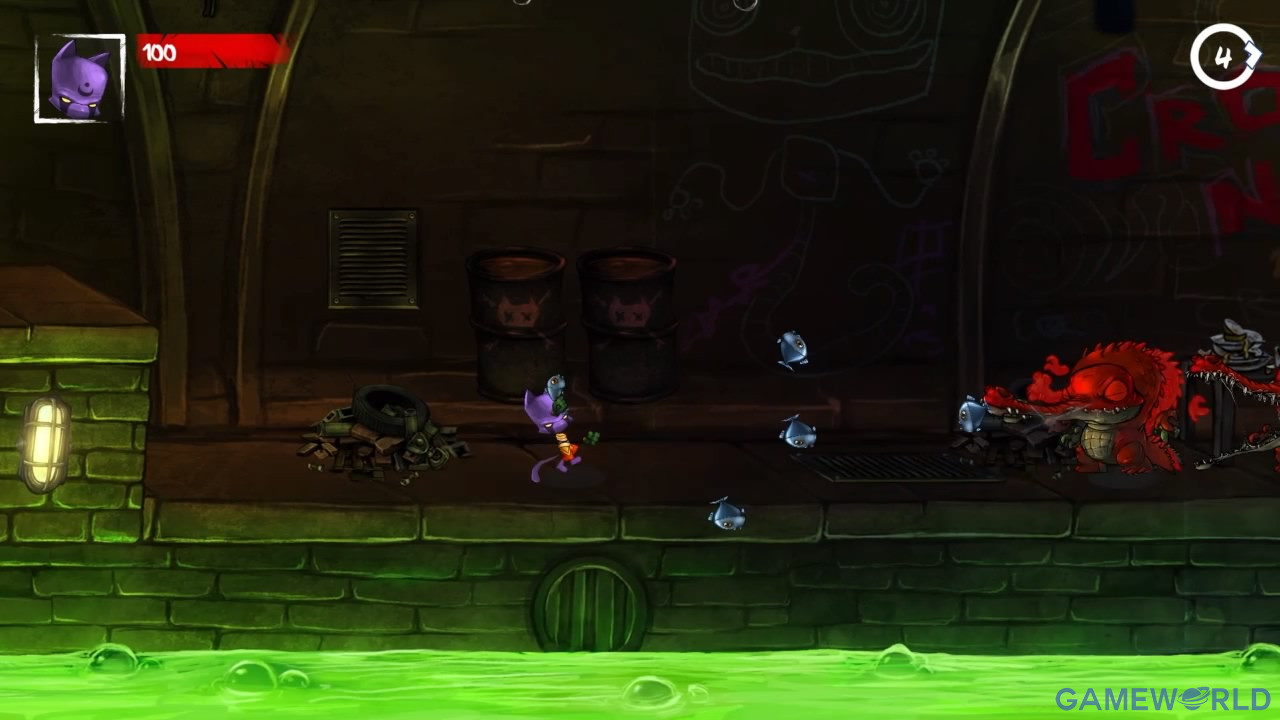 Υπάρχουν στιγμές όπου η κάμερα λειτουργεί παραπλανητικά, μας κρύβει χρήσιμες πληροφορίες για να είμαστε προσεκτικοί στα άλματα μας. Σε ένα level του κάστρου, αναζητούσαμε με ταχύτητα την επόμενη ομάδα εχθρών, προσγειωθήκαμε ανέμελα σε χαμηλότερο πάτωμα, συνεχίσαμε να κινούμαστε γρήγορα και δεν πήραμε είδηση το κενό που έχασκε μερικά εκατοστά μπροστά μας. Οι πολλές πλατφόρμες των levels συνδυάζουν αρμονικά την Beat ‘Em Up διασκέδαση με το Platform. Με την κάμερα κολλημένη στην γάτα μας, πρέπει να εξερευνήσουμε ένα level και στην συνέχεια να το χαρτογραφήσουμε στο μυαλό μας για να ξέρουμε που πατάμε.