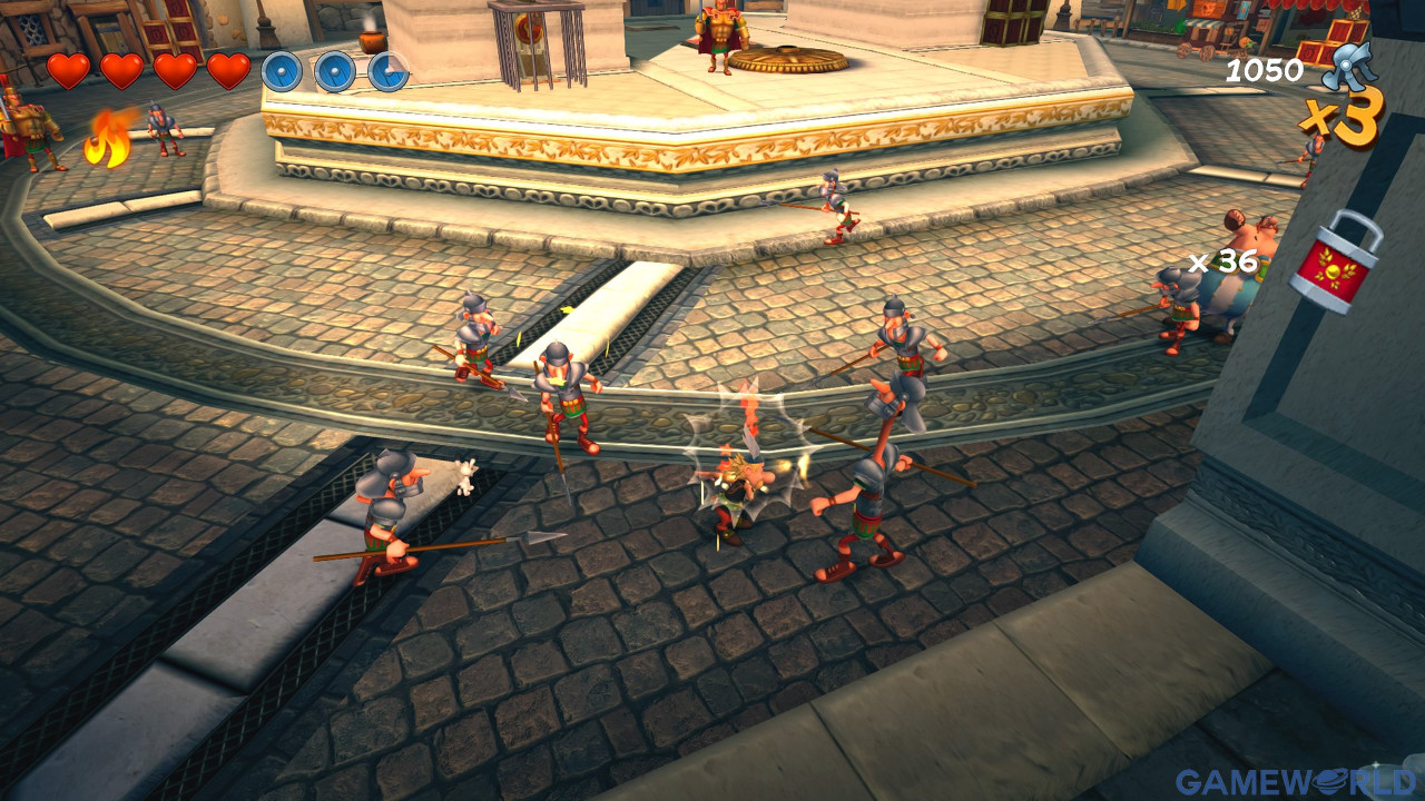 Το remaster έχει σχετικά χαμηλό επίπεδο δυσκολίας, εφόσον προετοιμάζεστε για κάθε επίθεση των εχθρών σας και απουσιάζει το στοιχείου του απρόβλεπτου. Παρόλα αυτά υπάρχουν δεκάδες τύποι εχθρών, ο ένας πιο ενδιαφέρον από τον προηγούμενο, όμως όλοι τους στο τέλος θα βιώσουν τον ίδιο πόνο από τις επιθέσεις των πιο broken Γαλατών της ιστορίας. Ένα πρόβλημα που υπήρχε με την έκδοση του 2006 και δυστυχώς δείχνει να παρέμεινε και στην remastered έκδοση, αφορούσε το όλο hitbox. Οι επιθέσεις σας καμιά φορά δεν θα φτάνουν τους Ρωμαίους όσο κι αν το νομίζετε, και στον αντίποδα θα δέχεστε ξυραφιές από τα δόρατά τους, όταν νομίζετε ότι βρίσκεστε σε ασφαλή ζώνη. Η λύση για αυτό το πρόβλημα είναι να χώνεστε στο τσούρμο και να μοιράζετε φάπες μέχρι ωσότου δεν μείνει κανένας όρθιος ή με τις αισθήσεις του. Η μάχη διατηρεί το στοιχείο των κλειδωμένων πυλών, που ξεκλειδώνονται μόνο στην περίπτωση όπου εξοντώσετε τον απαιτούμενο αριθμό Ρωμαίων.