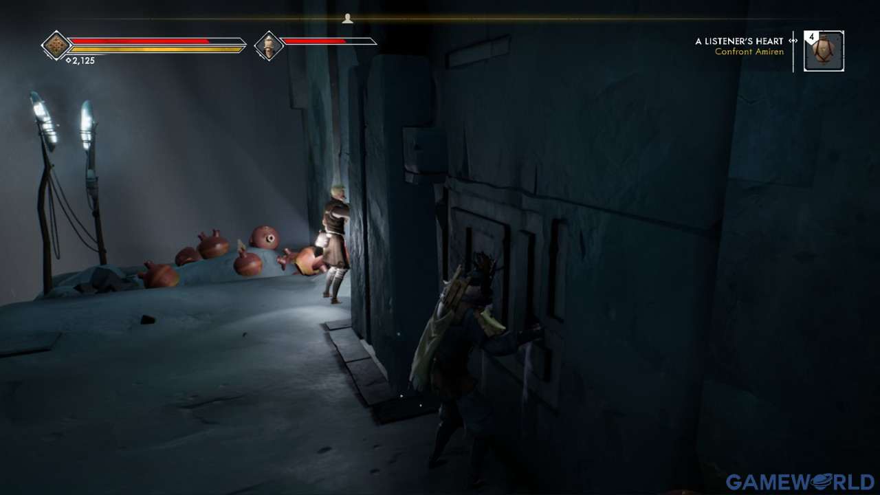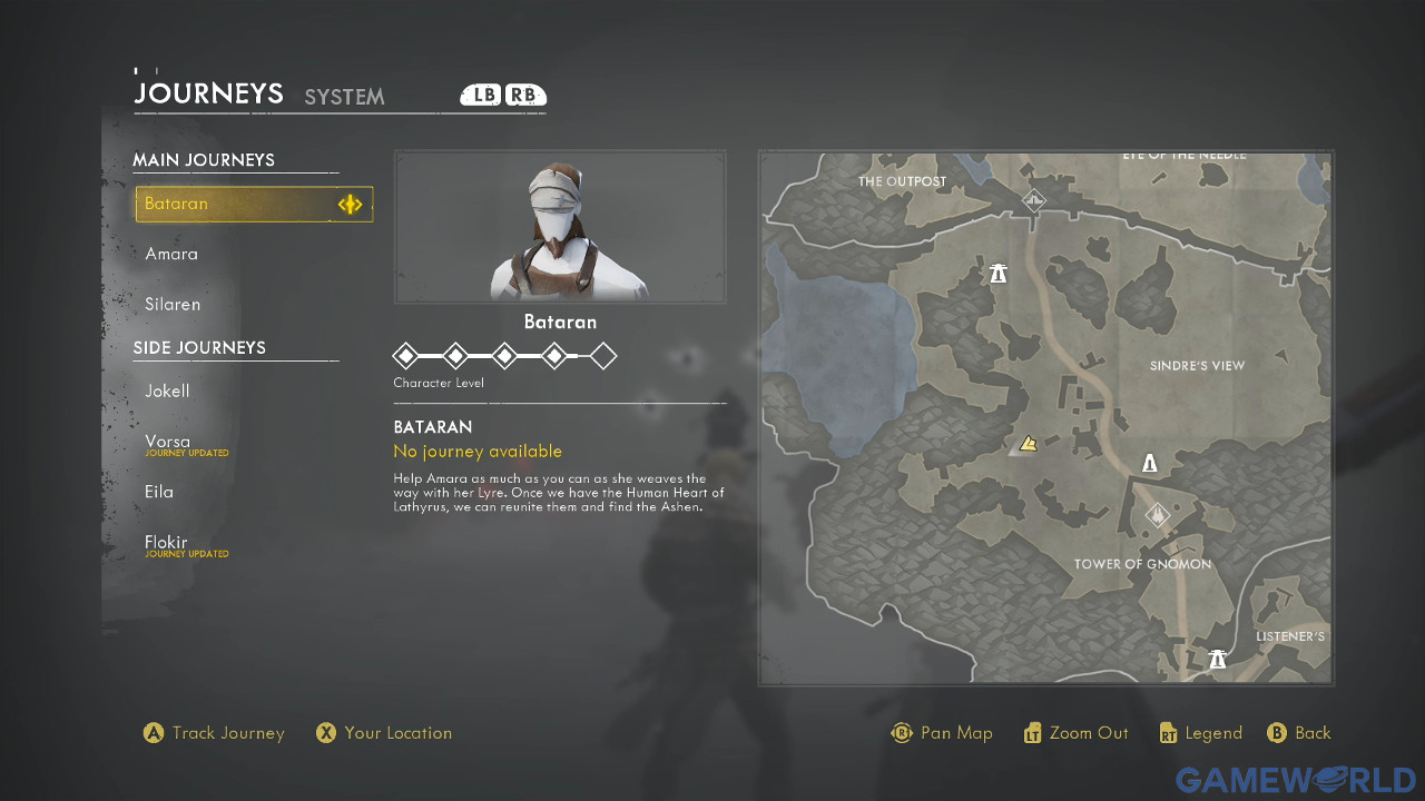 Στην περίπτωση όπου δεν είχαμε βασικές και προαιρετικές αποστολές δεν θα μπορούσαμε να μιλάμε για open world παιχνίδι. Στο Ashen, τα Main Journeys και τα Side Journeys ξεχωρίζουν, αλλά μόνο στο όνομα, αφού το περιεχόμενό τους είναι κατά βάση κοινό και μονότονο. Όλα τα objectives ακολουθούν ένα βαρετό μοτίβο, όπου αν δεν υπήρχε η μάχη ενδιάμεσα, θα μιλούσαμε για απόλυτη ξενέρα. Σε κάθε quest του παιχνιδιού, σχεδόν από την αρχή μέχρι και το τέλος, μιλάτε σε έναν χαρακτήρα, αυτός σας στέλνει να του βρείτε κάτι, κόβετε κεφάλια, βρίσκετε το πράμα, το επιστρέφετε και όλα καλά. Το δεχτήκαμε μία, δύο, τρεις, μετά τις 10 φορές όμως κατάντησε κουραστικό. Ακόμα και αν μπορείτε να πάτε όπου σας την βαρέσει ανά πάσα στιγμή, ξέρετε πως όταν αναλάβετε κάποιο Journey θα έχετε κάτι συγκεκριμένο να ανακτήσετε, μέσω βίας. Όταν τα καταφέρετε, θα εντοπίσετε και τα Ritual Stones τα οποία μας βοήθησαν να ανασάνουμε, τόσο λόγω της αποθήκευσης της προόδου μας την οποία επιτυγχάνουν, όσο και της χρήσης fast travel στις διαθέσιμες τοποθεσίες, από ένα σημείο και ύστερα.