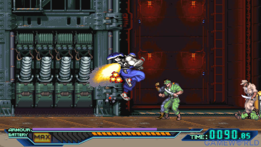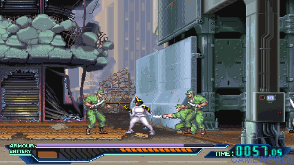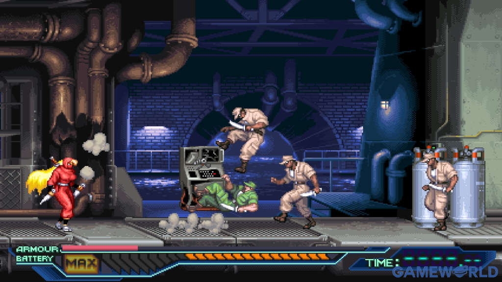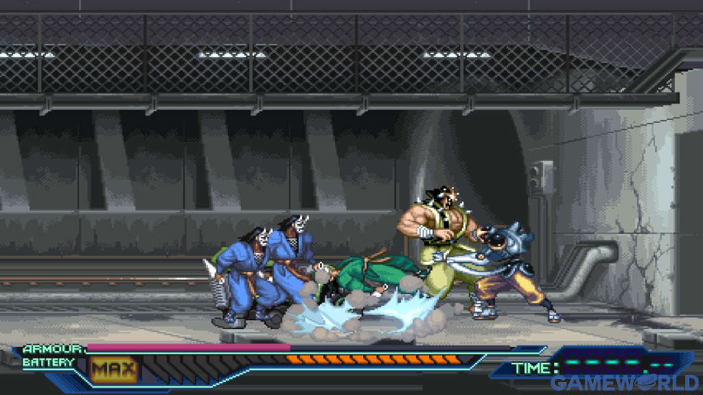 Δηλαδή ένας είναι power focused, άλλος speed και η μεσαία balanced. Ο κάθε χαρακτήρας έχει τις δικές του ξεχωριστές επιθέσεις. Φυσικά όλοι έχουν άμυνα, άλμα, βασικό jab κλπ, όμως με το πάνω βελάκι αλλάζουν σε κάτι σαν έξτρα όπλο και το χρησιμοποιούν για δυνατές κινήσεις. Ακόμα, στο κάτω μέρος της οθόνης υπάρχει μια μπάρα η οποία γεμίζει όσο δεν “πέφτετε” από χτυπήματα και όταν είναι στο max μπορείτε να απελευθερώσετε μια πανίσχυρη επίθεση που χτυπάει όλους τους εχθρούς στην οθόνη.