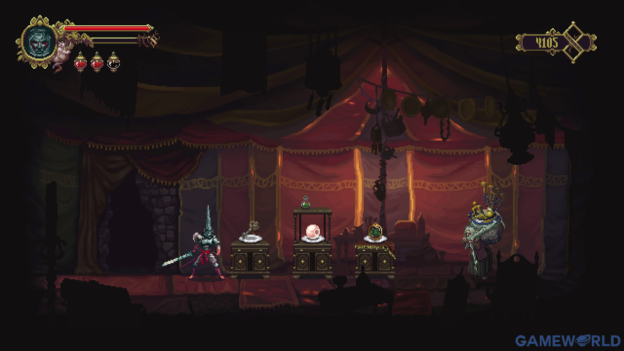 Τα Relics ευτυχώς είναι όλα υπέρ μας και η απουσία τους μας εμποδίζει να κινηθούμε ελεύθερα στον ανοικτό κόσμο του Blasphemous. Ματωμένες πλατφόρμες στέκουν αόρατες σε νευραλγικά σημεία. Πλατσουρίζουμε στους υπονόμους και δεν μπορούμε να πηδήξουμε ούτε εφημερίδα από την γλίτσα αν δεν έχουμε το nail uprooted from dirt στην διάθεσή μας. Ο αριθμός τους είναι μικρός και οι τρεις ανοικτές θέσεις που τα φιλοξενούν είναι αρκετές για να μην τα βάζουμε – βγάζουμε συνέχεια.