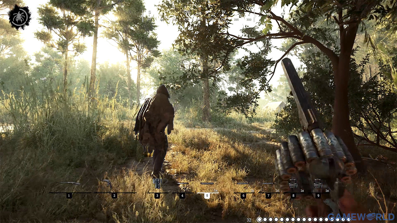 Στις δεκάδες ώρες ανελέητου κυνηγιού μόνο μια φορά καταραστήκαμε τα controls και αυτό, από δική μας βιασύνη. Ένας κυνηγός άρχισε να μας πυροβολεί θρασύτατα, καλυμμένος πίσω από ένα βράχο. Με μια περίτεχνη μανούβρα βγήκαμε πίσω από την πλάτη του, αποφασισμένοι να τον κόψουμε φέτες με την matcheta μας. Με την φόρα που πήραμε και την οργή που διοχετεύσαμε στο mouse, τα δάχτυλά μας έσπρωξαν ανεπαίσθητα το ροδάκι και η matcheta αντικαταστάθηκε από μια φωτοβολίδα. Ακόμα και έτσι, δεν σταματήσαμε την επίθεση, προσπαθώντας να του καρφώσουμε σαν μαχαίρι την φωτοβολίδα στο κορμί αλλά εισπράξαμε μια σφαίρα για την τόλμη μας!