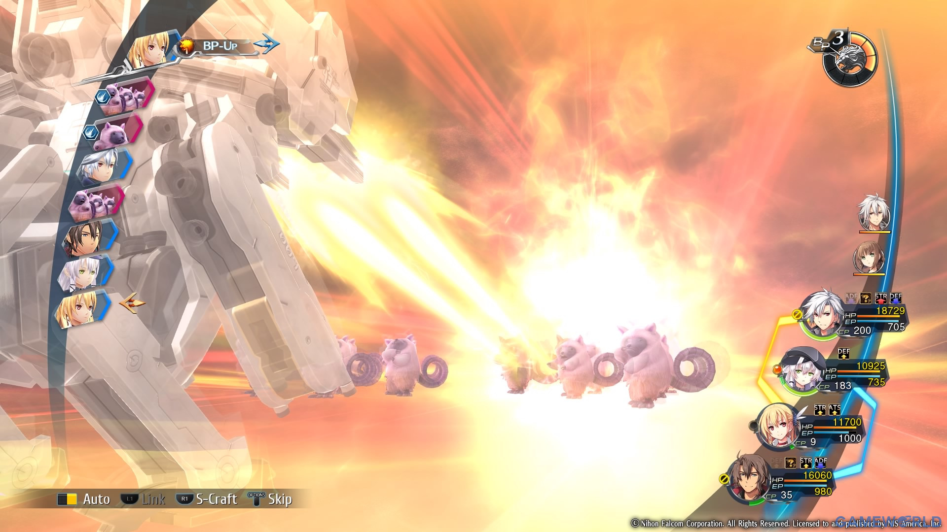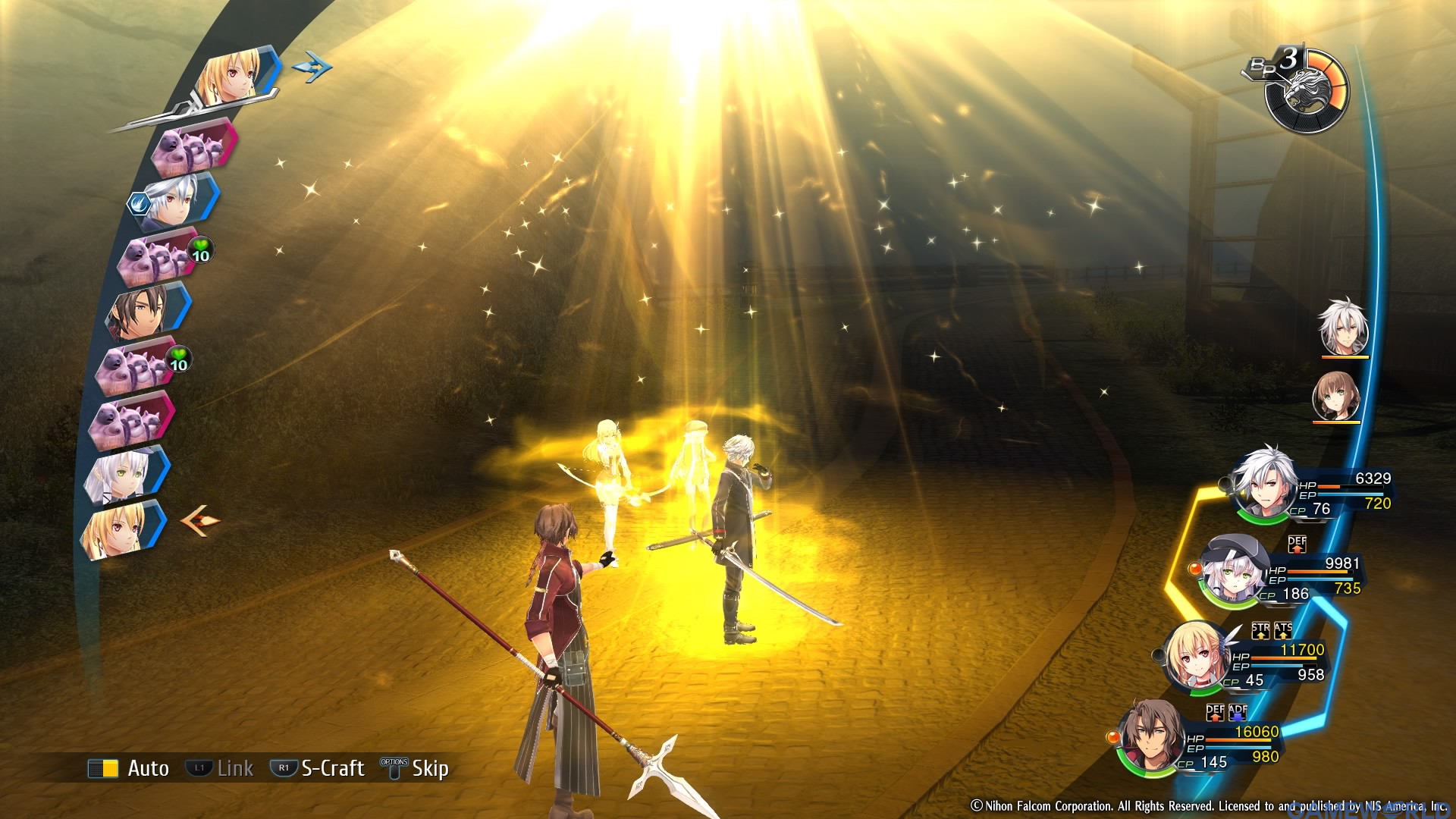 Κάποιες φορές θα τα φυλάξετε έως ότου γεμίσει στο φουλ η μπάρα τους και θα ενεργοποιήσετε το υπέρτατο link attack εν ονόματι Burst, εξαπολύοντας και τα τέσσερα μέλη της ομάδας σας πάνω στο σύνολο των εχθρών. Σε άλλες περιπτώσεις θα τα ξοδέψετε εστιάζοντας σε πολύ συγκεκριμένους στρατηγικούς στόχους. Για παράδειγμα, βλέπετε ότι οι αντίπαλοι φορτώνουν τα Arts και τα Craft τους, δεν προλαβαίνετε να κόψετε σε όλους την φόρα και αντιλαμβάνεστε ότι θα λουστείτε στο damage τα επόμενα λεπτά. Για να το αποτρέψετε, ενεργοποιείτε το Brave Order της Altina και τοποθετείτε μια ενεργειακή ασπίδα που προστατεύει όλους τους χαρακτήρες από ένα μικρό αριθμό επιθέσεων. Η εν λόγω ασπίδα επιστρέφει το εχθρικό damage στην αφετηρία έτσι έχετε με “ένα σμπάρο δύο τρυγόνια”, ταυτόχρονη προστασία και δωρεάν αντεπίθεση.