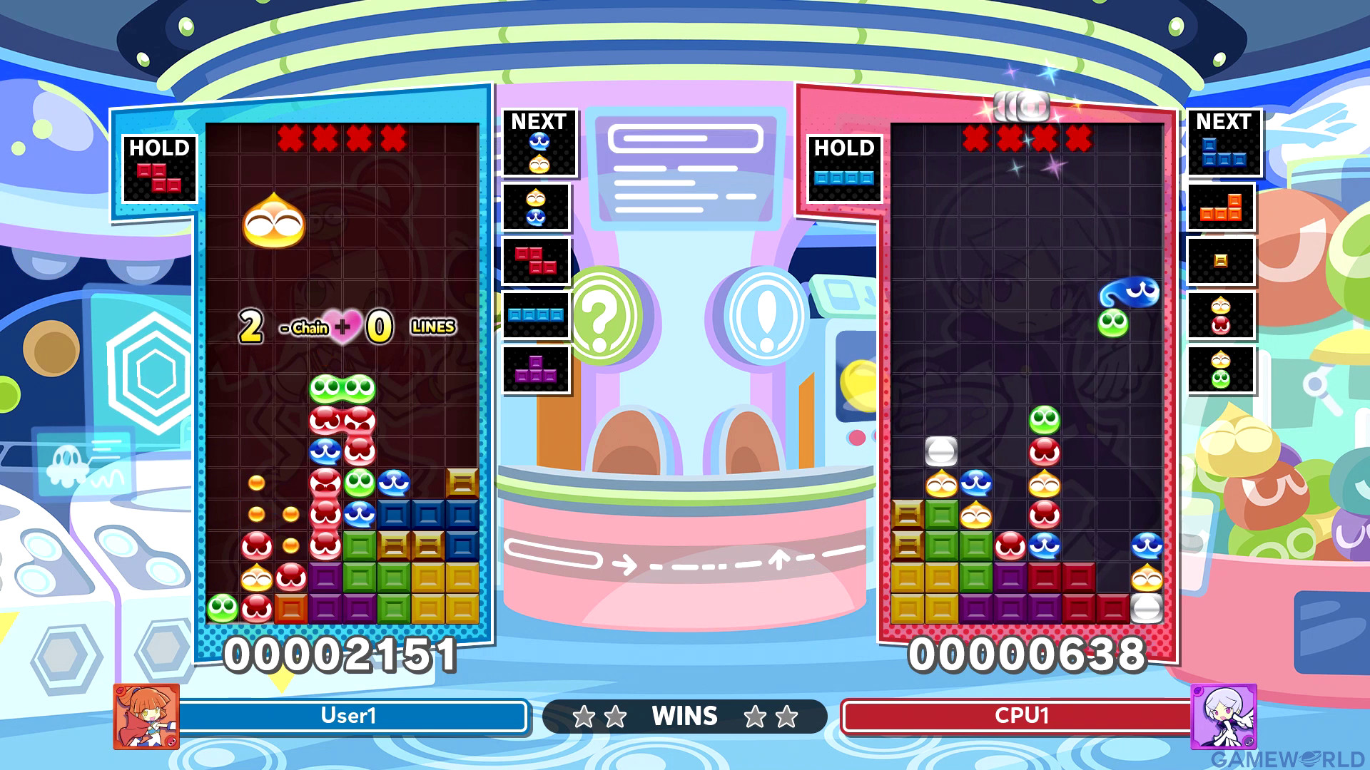 Η δυσκολία αμφότερων των Puzzles αυξάνεται σταδιακά και ο αγώνας σας δεν περιορίζεται στην προπόνησή των skills σας αλλά οδηγεί και στην συσσώρευση credits τα οποία θα σας χρειαστούν στο Shop. Στην ενότητα του Options and Data του κεντρικού μενού εντοπίζεται η στατιστική πλευρά της απόλαυσης του παιχνιδιού αλλά και οι καλοδεχούμενες δυνατότητες ουσιαστικής και καλλυντικής αναβάθμισης. Το προαναφερόμενο Shop είναι ο παράδεισος των διακοσμητικών επιλογών που εξαγοράζετε ξοδεύοντας credits. Η μεταμόρφωση των Puyos και Tetriminos σε αλλόκοτα σχήματα όπως μια μπάλα του μπιλιάρδου, οι εναλλακτικές φωνές των χαρακτήρων και ένα σωρό χαριτωμένα εικονίδια για να στολίσετε το avatar σας που θα θαυμάζετε σε κάθε αγώνα σας είναι ισχυρά κίνητρα για να κυνηγάτε τα credits έως ότου τα αποκτήσετε όλα. Στην συνέχεια πηγαίνετε στις επιλογές Player και Theater του ίδιου μενού για να τα τοποθετήσετε.