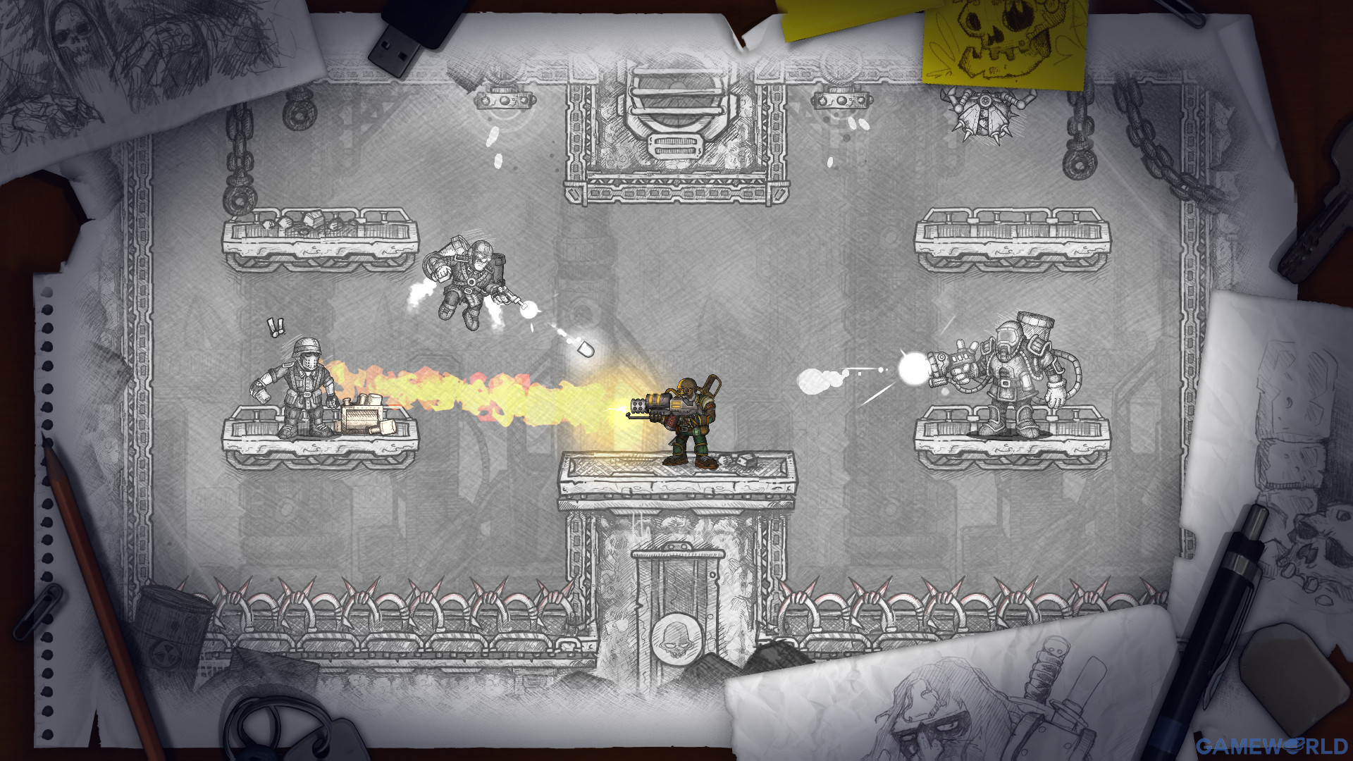 Μιλάμε για καθαρόαιμο Co-Op mode οπού παίζετε σχεδόν σαν σιαμαίοι με τον συμπαίκτη σας γιατί δεν επιτρέπεται σε κανέναν να αλλάξει οθόνη η να προχωρήσει παραπέρα δίχως να είναι και ο άλλος δίπλα. Σε αρκετές οθόνες θα αρχίσετε να αισθάνεστε κλειστοφοβικα με τόσο κόσμο ασφυκτικά πιεσμένο στα λιγοστά πλαίσια τους. Η ομορφιά του εν λόγω Co-Op mode είναι ότι λειτουργείτε πραγματικά σαν μονάδα με τον συμπαίκτη σας. Μοιράζεστε τους στόχους, τους πόρους και τα όπλα, μάχεστε πλάτη με πλάτη όταν σας περικυκλώνουν, προστατεύετε ο ένας τον άλλο όταν διακρίνετε κίνδυνο και φυσικά, ρίχνετε άπειρο γέλιο με κάθε αψυχολόγητη ενέργεια, δική σας η του συμπαίκτη. Χρειάζεται να προσθέσω ότι τα bosses θα... κακοπαθήσουν ενάντια σε δυο υπερ-στρατιωτες;
