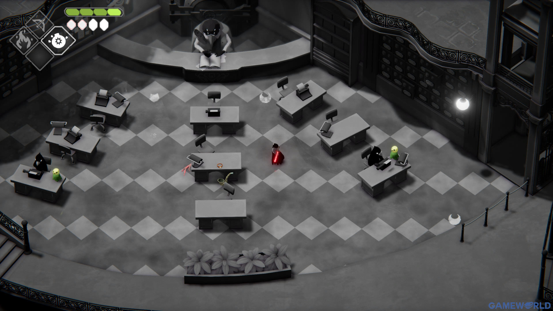 Παρότι το κοράκι μας δεν βγάζει άχνα, οι χαρακτήρες που συναντάει είναι αρκετά εκκεντρικοί, χιουμοριστικοί και πετάνε και πετυχημένες ατάκες. Να σημειώσουμε εδώ ότι η ιστορία διαδραματίζεται στο ίδιο σύμπαν με το Titan Souls αλλά δεν συνδέονται άμερα. Σαν σύνολο το Death’s Door μας πήρε γύρω στις 10 ώρες για να το ολοκληρώσουμε, ενώ κάνοντας τα πάντα και φτάνοντας στο 100%, περάσαμε τις 15. Για το συγκεκριμένο στυλ που έχει το παιχνίδι η διάρκεια είναι ιδανική διότι δεν είναι ούτε πολύ σύντομη, ούτε παρατραβάει.