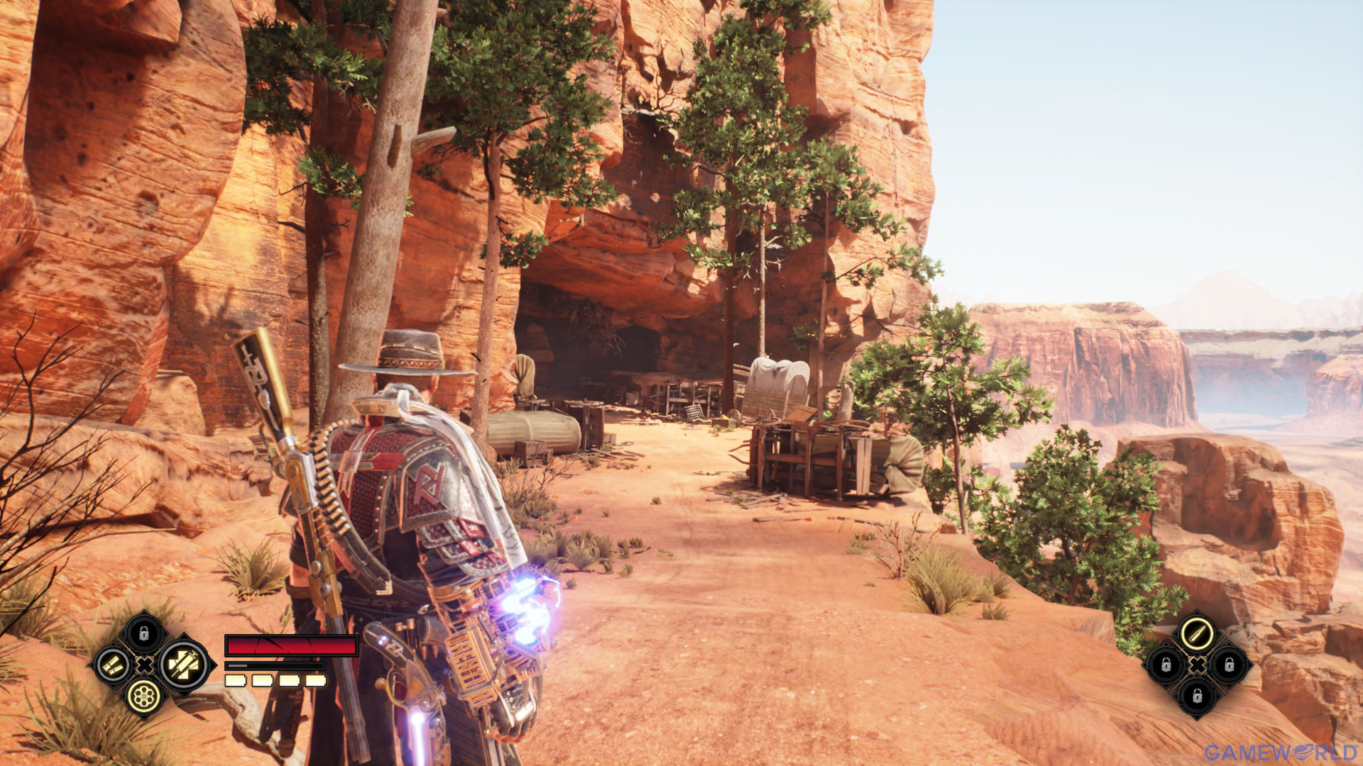 Στο gameplay έχουμε ένα Third-person Shooter με αρκετές melee επιθέσεις. Ειδικά στην αρχή θα βασίζεστε αρκετά στις μπουνιές με το δυνατό σας γάντι. Τα combos είναι αρκετά ικανοποιητικά ειδικά όταν τα μάθετε καθώς περιέχουν επιθέσεις με ώθηση, εναέριες και αρκετούς συνδυασμούς. Σύντομα θα αρχίσετε να αποκτάτε και όπλα, τα οποία έχουν αρκετή ποικιλία. Το revolver λειτουργεί ως αυτόματο και χρησιμεύει περισσότερο στις κοντινές επιθέσεις. Το τουφέκι είναι για πιο μακρινές, ενώ σύντομα θα αποκτήσετε μία βαλλίστρα, ένα minigun και φλογοβόλο. Τα πυρομαχικά όλων των όπλων είναι απεριόριστα, όμως μόλις τελειώσετε τον κάθε γεμιστήρα θα πρέπει να περιμένετε να ξαναφορτώσουν, οπότε αλλάζετε όπλο.