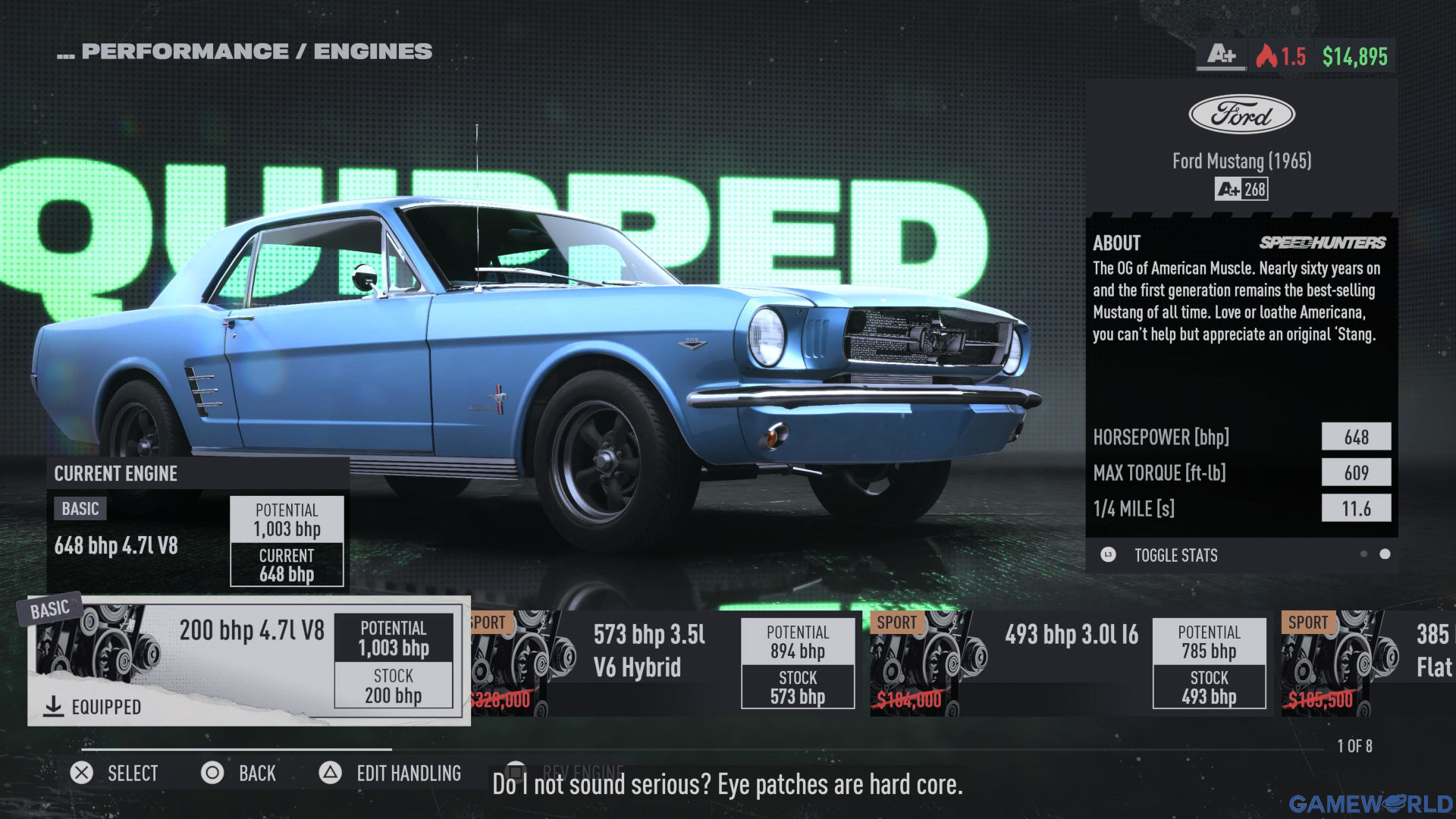 Το customization στοιχείο είναι μεγάλης σημασίας καθώς αν δεν ασχοληθείτε με αυτό δε θα μπορείτε να αναβαθμίσετε το όχημα σας και ως εκ τούτου να συμμετέχετε στους Σαββατιάτικους αγώνες, πράγμα που σημαίνει πως δεν μπορείτε να προχωρήσετε το progress. Οι επιλογές που σας δίνονται είναι ατελείωτες αλλά και πανάκριβες. Από το βάψιμο μιας αεροτομής μέχρι και την αλλαγή ενός δισκόφρενου δεν θα χρειαστείτε πολλά χρήματα, αν όμως ενδιαφέρεστε για νέο κινητήρα τότε θα πρέπει να φτύσετε αίμα στα racing events. Η αναβάθμιση των οχημάτων έχει ορισμένες κατηγοριοποιήσεις και προκειμένου να φτάσετε στα ανώτερα κλιμάκια θα πρέπει να κάνετε upgrade και το ίδιο το garage. Επίσης, υπάρχει μεγάλη ποικιλία customization σχετικά με τον χαρακτήρα σας, από το παρουσιαστικό του μέχρι και τρόπους πανηγυρισμού στο τέλος κάθε αγώνα. Στον συγκεκριμένο τίτλο έχετε πολλές επιλογές από αυτοκίνητα πολλών εταιρειών καθώς καλείστε να επιλέξετε ανάμεσα από 140 οχήματα, από Vintage μοντέλα όπως Chevrolet Camaro SS 1967 και Dodge Charger R/T 1969 μέχρι και πιο luxury επιλογές από εταιρείες όπως Bugatti και Lamborghini. Το κακό αυτής της υπόθεσης είναι πως δεν θα υπάρχουν αυτοκίνητα της Toyota όπως και σε κάποιους προηγούμενους Need for Speed τίτλους.