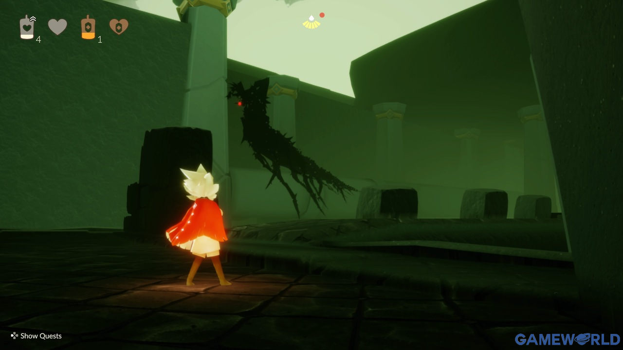 Το παιχνίδι αυτό δεν είναι για τον καθένα. Όπως έχει προαναφερθεί ο κεντρικός πυρήνας του παιχνιδιού είναι το ταξίδι του χαρακτήρα σας μέσω τον επτά βασιλείων με σκοπό να αναρτήσει τους αστερισμούς. Δεν παρέχει πολλές στιγμές με δράση όπως το Journey, όμως υπάρχουν ελάχιστες περιοχές όπου το παιχνίδι περιλαμβάνει stealth sections. Μαύροι “δράκοι” πετάνε ψηλά στον ουρανό και θα πρέπει να περάσετε την περιοχή χωρίς να σας εντοπίσουν. Υπάρχουν κόκκινες ενδείξεις τις οποίες θα πρέπει να αποφύγετε. Αν ο δράκος σας χτυπήσει, θα χάσετε μερικά winged light από την κάπα σας τα οποία θα σκορπιστούν για λίγα δευτερόλεπτα στην περιοχή. Μπορείτε να τα ξανά μαζέψετε όμως ο κίνδυνος να σας ξανά επιτεθούν παραμένει. Οι δράκοι και η βροχή αποτελούν τους κύριους κινδύνους στο ταξίδι σας.