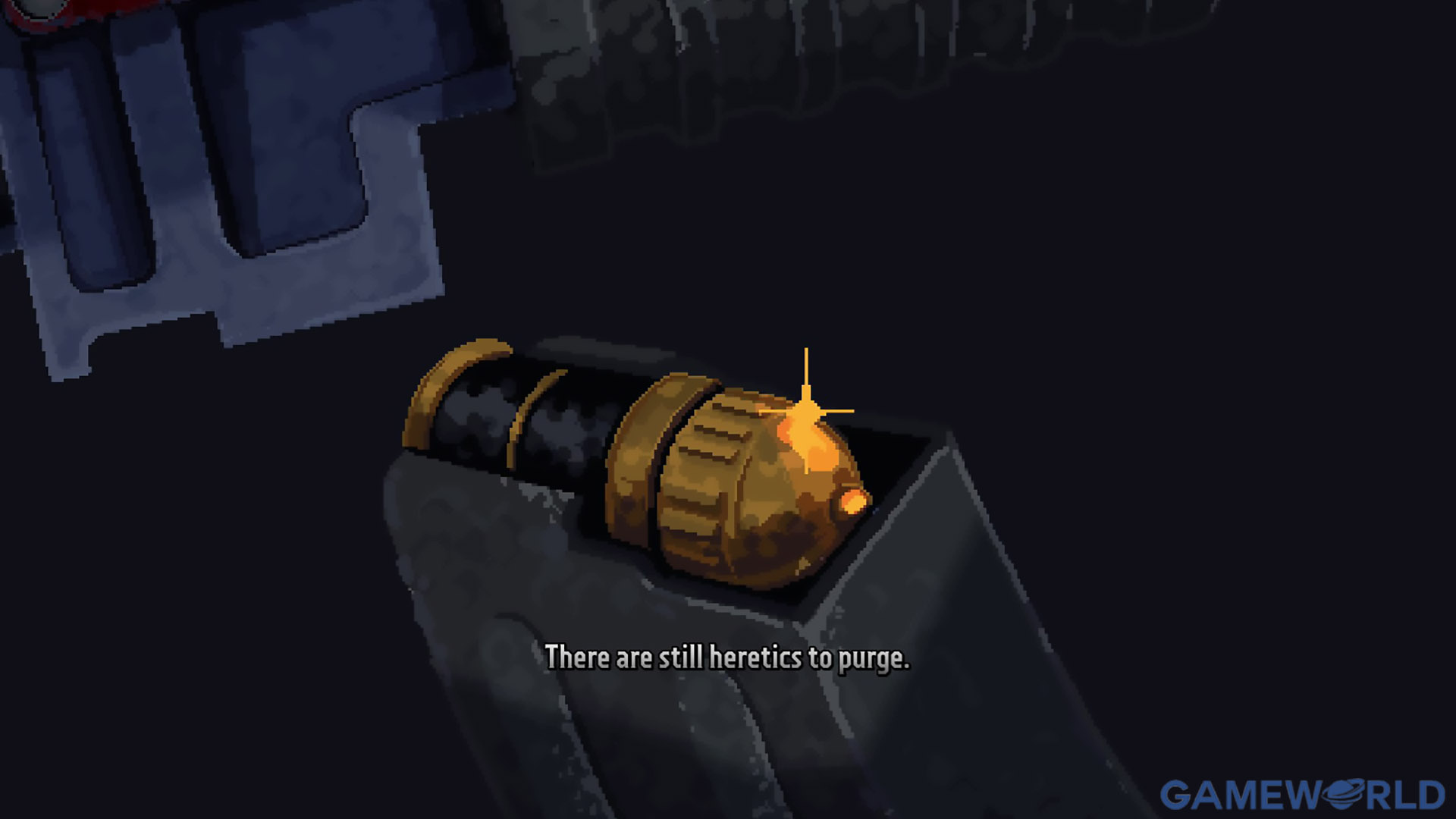 Παρόλα αυτά, υπάρχουν κάποια τοπία που εντυπωσιάζουν. Αυτές οι ήσυχες στιγμές μετά τη μάχη, που αντικρίζετε τις κορυφές ναών να ξεπροβάλλουν στον ορίζοντα, τα αγάλματα ηρώων από το παρελθόν να κοιτούν επιβλητικά και εξεταστικά τον Malum και ταυτόχρονα εμάς τους ίδιους. Έξω από το παράθυρο ή όταν σηκώνουμε το κεφάλι μας προς τον ουρανό, ανοίγεται η τρομακτική αλλά όμορφη μορφή του Warp Rift. Είναι στιγμές που προκαλούν δέος και το pixel art δεν αφαιρεί από αυτές, αντίθετα τις ενισχύει.