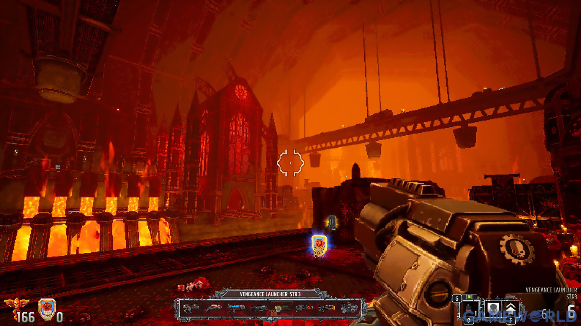 Όπως κλασικά σε αυτού του τύπου FPS, έχουμε δύο είδη ζωής, το health και το contempt, δηλαδή το armor (γιατί έδωσαν θεματικό όνομα μόνο στο armor και όχι και στο health είναι ένα καλό ερώτημα, αλλά ας το αγνοήσουμε). Θα συναντήσετε πολλά secret power-ups, περισσότερο ή λιγότερο κρυμμένα, σε όλα τα levels που θα βοηθήσουν ενάντια στις ορδές του Chaos. Θα βρείτε μια καλή γκάμα όπλων, τα οποία προέρχονται από τις βασικές κατηγορίες του genre (shotgun, heavy machinegun, grenade launcher κτλ.) με αντίστοιχα μοντέλα όπλων που καλύπτουν τον ρόλο από το Warhammer 40k universe, με εξαιρετικό sound και model design για όλα.