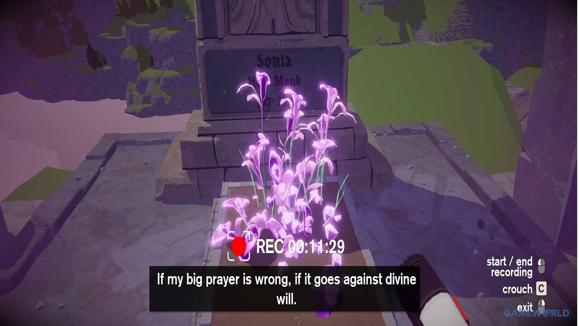 Στην εξερεύνηση θα κινείστε με πόδια ή με ποδήλατο, ενώ θα έχετε μια κάμερα για λήψη φωτογραφιών κι ένα καταγραφικό ήχου ακόμα. Στην αρχή τα περιβάλλοντα θα είναι κάπως περιορισμένα, χωρίς διακλαδώσεις, μέχρι να φτάσετε στην κοιλάδα Tieng, ένα ανοιχτό περιβάλλον όπου διαδραματίζεται το μεγαλύτερο μέρος της ιστορίας και το οποίο προσφέρεται και για πιο χαλαρή βόλτα. Σε όλη την διάρκεια του τίτλου θα έχετε την δυνατότητα να φωτογραφίζετε όσα βλέπετε, ρυθμίζοντας focus, καθαρότητα, κι επιλέγοντας ακόμα και φίλτρα. Με το καταγραφικό ήχου θα μπορείτε, επίσης, με παρατεταμένο R στραμμένο προς τις πηγές ήχου του περιβάλλοντος, να καταγράφετε τους διάφορους ήχους, ενώ αργότερα θα συναντήσετε και λουλούδια που κουβαλάνε διαλόγους από το παρελθόν, κι αξίζει να τα ακούσετε για να τα εγγράψετε στο καταγραφικό. Με όσα συλλέγετε από τις καταγραφές, θα μπορείτε να διακοσμείτε το ημερολόγιό σας, το οποίο με προσχέδια σας καθοδηγεί σε έναν βαθμό ως προς το τι είναι προτιμότερο να συλλέξετε αλλά υπάρχει και μεγάλο περιθώριο ελευθερίας.