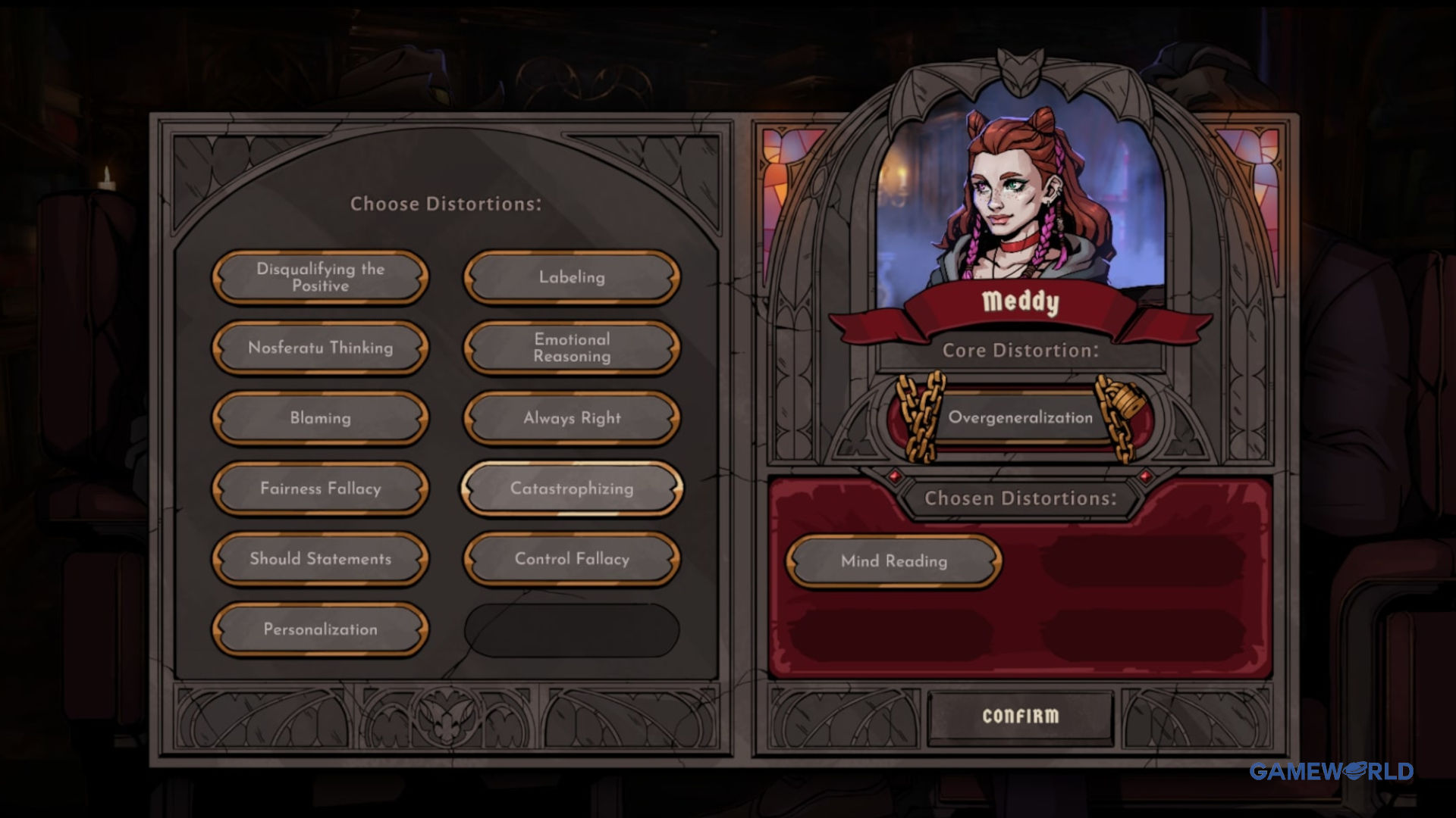 Το βασικό σκέλος του gameplay περιστρέφεται γύρω από την ιδιότητά σας ως επίδοξος ψυχαναλυτής. Ενώ δεν λείπουν και πολλαπλές επιλογές, σε αντίθεση με ένα τυπικό Visual Novel δεν δίνεται έμφαση σε αυτό τον τρόπο αλληλεπίδρασης. Αντί αυτού θα κληθείτε, συμβουλευόμενος και τις σημειώσεις σας, να ανιχνεύσετε, στον λόγο των ασθενών σας, μια πληθώρα διανοητικών σφαλμάτων, τρόπων δηλαδή με τους οποίους παραμορφώνεται η πραγματικότητα στην αντίληψη τους. Για παράδειγμα μπορεί να βλέπουν τα πράγματα απόλυτα, άσπρα-μαύρα, εκεί που πάντα η αληθινή ζωή είναι πιο περίπλοκη ή να εκτιμούν λάθος τον βαθμό ελέγχου του κόσμου που τους αναλογεί, να θεωρούν άλλοτε ότι είναι αβοήθητοι κι άλλοτε παντοδύναμοι.