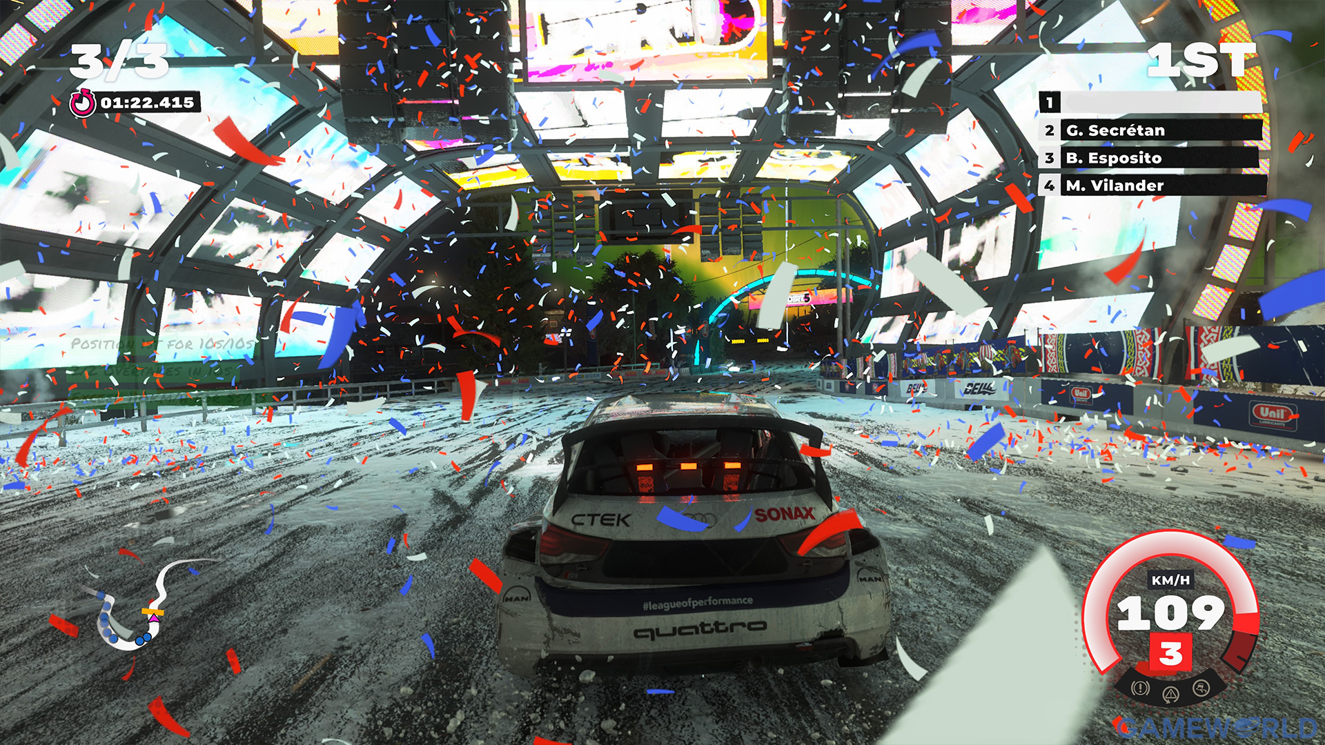Κάτι που έχει δικαίως συζητηθεί πάρα πολύ, είναι ο χειρισμός των αυτοκινήτων. Ο καλύτερος τρόπος για να περιγράφει είναι λέγοντας ότι δεν υπάρχει η αίσθηση της στιβαρότητας αλλά με έναν μαγικό τρόπο συμπεριφέρονται όπως θέλει ο κάθε οδηγός. Αξίζει να αναφερθεί ότι τα κουμπιά είναι τα κλασσικά όπως σε κάθε Racing game και δεν διαφέρουν σε τίποτα. Το πρώτο πράγμα που θα παρατηρήσετε είναι το πόσο εύκολα μπορείτε να κάνετε drift. Με το παραμικρό input, το όχημά σας θα αρχίσει να πηγαίνει πλάγια και χωρίς ιδιαίτερη προσπάθεια. Αν είστε υποστηρικτής του ρεαλισμού, σίγουρα θα απογοητευτείτε. Αν από την άλλη θέλετε απλώς να περάσετε καλά, τότε είναι ακριβώς αυτό που ψάχνετε. Κάτι πάρα πολύ απολαυστικό είναι τα adaptive triggers και το haptic feedback του DualSense. Χωρίς καμία υπερβολή θα νιώσετε μέχρι και την παραμικρή λεπτομέρεια στα χέρια σας. Το γκάζι και το φρένο σκληραίνουν με βάση την κατάσταση του δρόμου, η αλλαγή ταχυτήτων προκαλεί ένα μικρό τράνταγμα στο χειριστήριο και γενικά τα πάντα αποτυπώνονται με δονήσεις. Ανάλογα με το έδαφος στο οποίο βρίσκεστε (χιόνι, χώμα, πάγος ή άσφαλτος), η συμπεριφορά του αυτοκινήτου αλλάζει ραγδαία. Θα χρειαστείτε σίγουρα μερικούς αγώνες μέχρι να σταματήσετε να κοπανάτε τους τοίχους. Σαν σύνολο θα μπορούσατε να πείτε ότι ο χειρισμός σας επιτρέπει να κάνετε τα πάντα με τέτοιο τρόπο που να μην χρειάζεται απαραίτητα να γνωρίζετε ακριβώς το πώς τα κάνετε.