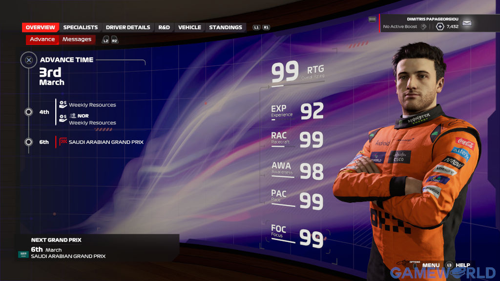 Ένας νέος μηχανισμός που θα παρατηρήσετε είναι η αναγνωρισιμότητά του οδηγού σας στην ομάδα που βρίσκεται. Η αναγνωρισιμότητα επηρεάζεται από το rating στα skills του οδηγού σας, τις επιδόσεις σας, από τη διάρκεια του συμβολαίου που θα υπογράψετε με την ομάδα σας και την ανταπόκρισή σας σε άλλες ομάδες που προσπαθούν να σας προσεγγίσουν. Όσο μεγαλύτερη είναι η αναγνωρισιμότητά σας, τόσες περισσότερες αναβαθμίσεις θα μπορείτε να αποκτήσετε για το μονοθέσιο σας. Ωστόσο, σε ομάδες που θα έχετε ανταγωνιστικό teammate, η αναγνωρισιμότητα και των δύο οδηγών θα μείνει στάσιμη, κάνοντας ανέφικτη την περαιτέρω εξέλιξη του μονοθέσιου. Παράλληλα, πριν κάθε αγώνα καλείστε να θέσετε διάφορους στόχους με τους μηχανικούς σας. Η εκπλήρωση αυτών των στόχων θα ξεκλειδώσει διάφορα perks όπως μειωμένο χρόνο αναβαθμίσεων. Κατά τη διάρκεια των αγώνων, εμφανίζονται διάφορα challenges, που η ολοκλήρωση τους θα αυξήσει λίγο τα skills του οδηγού σας και συνεπώς την αξία σας στην αγορά οδηγών. Τέλος, διάφορα επιτεύγματα, όπως η συγκέντρωση ενός συγκεκριμένου αριθμού νικών, θα δώσει μια γερή αύξηση στα εν λόγω skills σας.