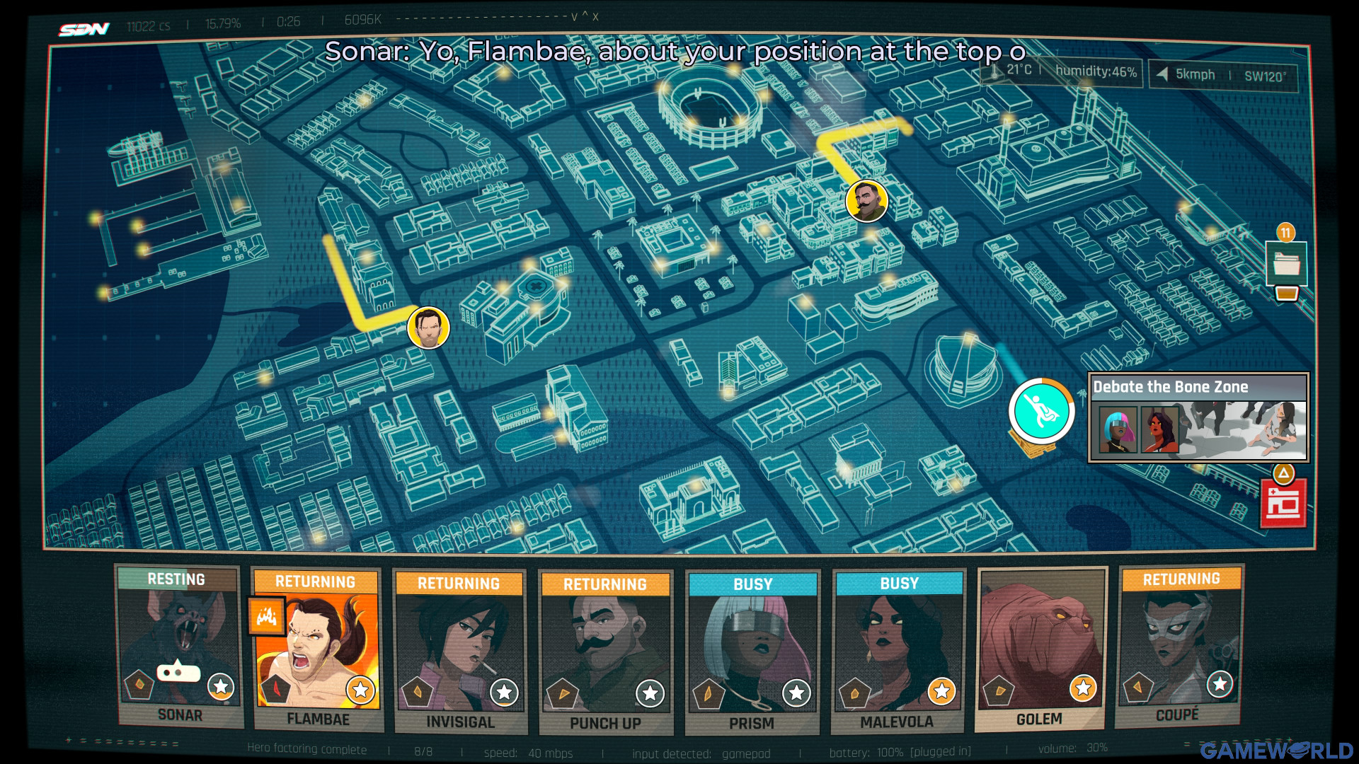 Η διαχείριση των ηρώων είναι σαν παίζετε ένα ελαφρύ Strategy. Έχετε δηλαδή μπροστά σας τον χάρτη της πόλης, σε διάφορα σημεία γίνεται κάποια εγκλήματα σε πραγματικό χρόνο και ανάλογα την φύση του εγκλήματος και τις ιδιότητες του κάθε ήρωα, στέλνετε τον κατάλληλο. Αφού χρησιμοποιήσετε έναν ήρωα, υπάρχει cooldown μέχρι να ξαναγίνει διαθέσιμος, ενώ ανάλογα τις επιτυχημένες αποστολές ξεκλειδώνετε και skill points όπου αναβαθμίζετε τις ικανότητές τους. Να σημειώσουμε όμως ότι οι επιδόσεις σας στις αποστολές δεν έχουν ιδιαίτερη επίπτωση στην εξέλιξη της ιστορίας. Κατά τη διάρκεια των αποστολών υπάρχει και ένα hacking mini-game, όταν προσπαθείτε να αποκτήσετε πρόσβαση σε κάμερες ασφαλείας ή να ανοίξετε πόρτες.