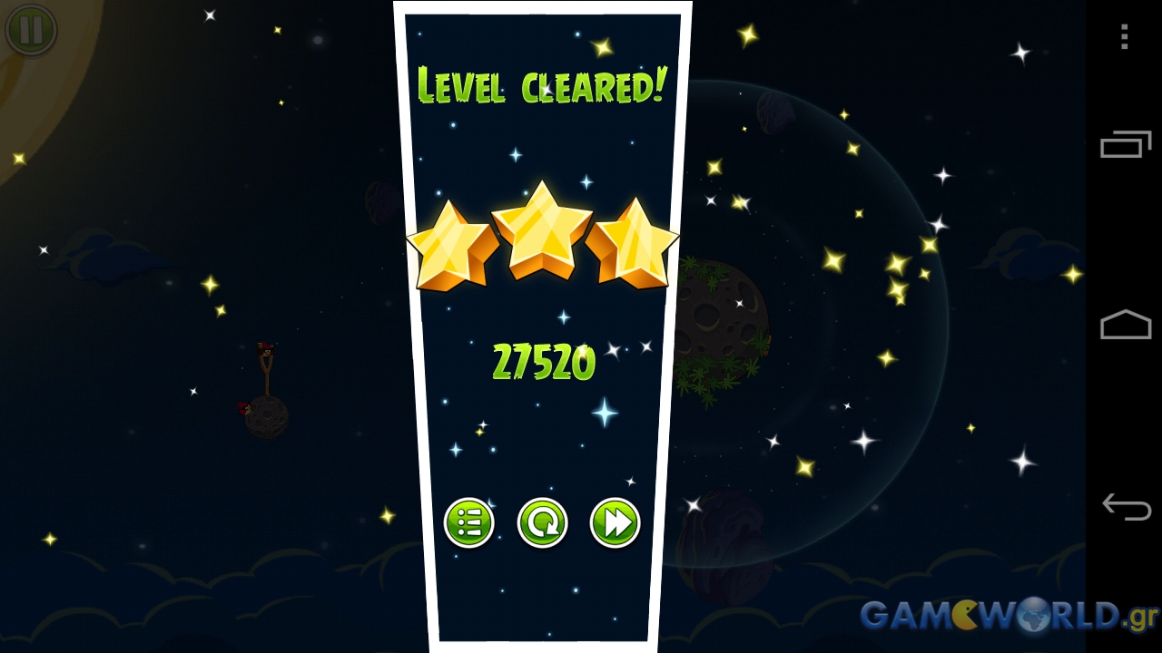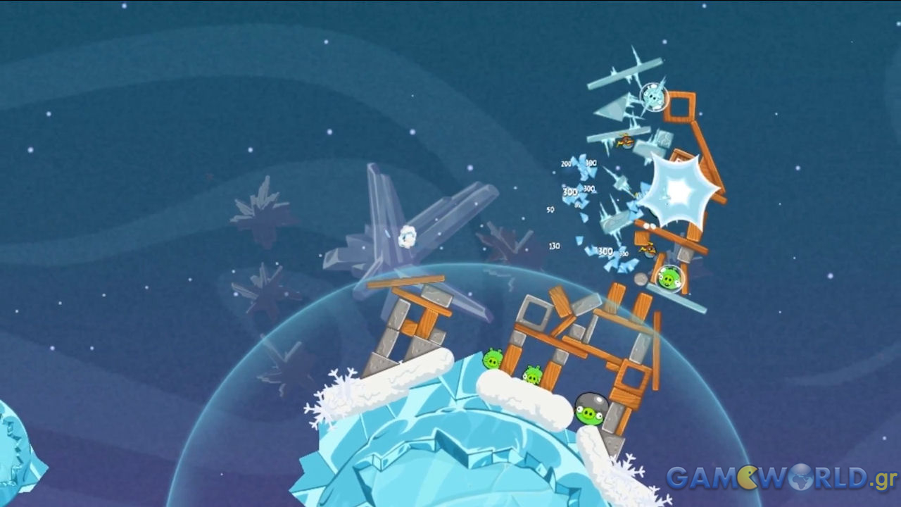 Εδώ αξίζει να αναφέρουμε ότι τα περιβάλλοντα του παιχνιδιού είναι πολύ πιο ικανοποιητικά σε σχέση με τους προκατόχους του, διατηρώντας πάντα το χαριτωμένο και καρτουνίστικο ύφος τους. Είναι χάρμα οφθαλμών, χωρίς καμία πτώση στο frame rate, ακόμα και σε μεγάλες αναλύσεις, σε οποιαδήποτε οθόνη κι αν τα δείτε. Οι μηχανισμοί λειτουργούν ακόμα καλύτερα μιας και πλέον δεν θα βρείτε κάστρα που, παρότι είναι κατασκευασμένα από γυαλί και πάγο, μερικές φορές απέτρεπαν τις επιθέσεις σας λες και ήταν από...ατσάλι. Αυτά έχουν αντικατασταθεί από υλικά τα οποία σπάνε και διαλύονται ή ραγίζουν, με πολύ πιο φυσιολογικό και προβλέψιμο τρόπο. Το πιο πιθανό είναι να έβαλε και το χεράκι της η ίδια η NASA στον συγκεκριμένο τομέα, ο οποίος είναι κατά πολύ βελτιωμένος.