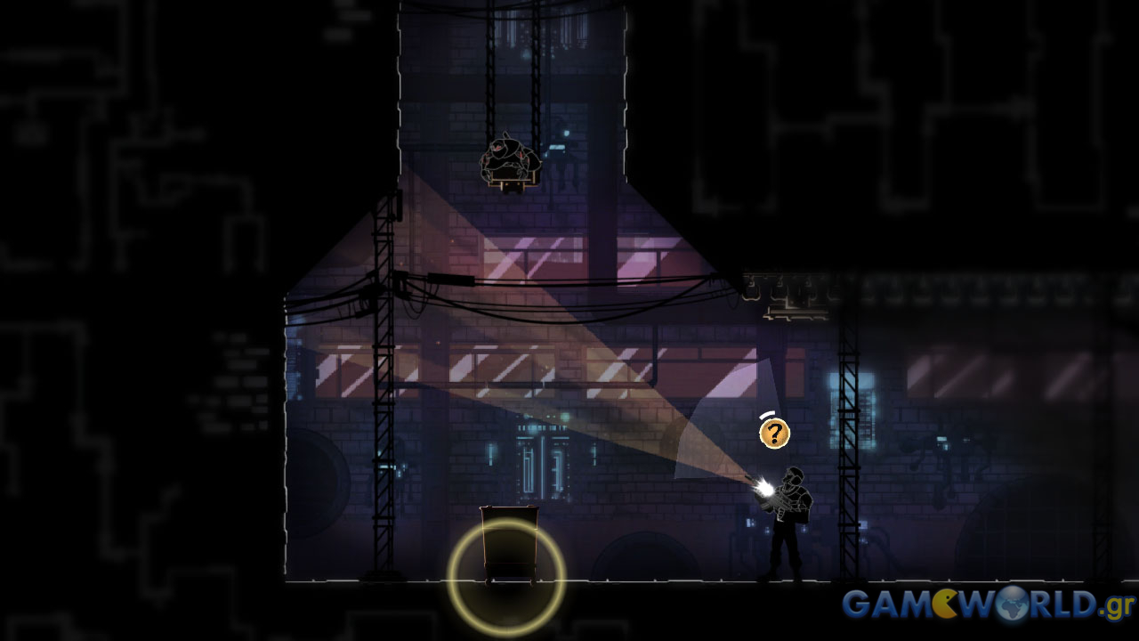 Τα δεδομένα που σας δίνονται σε κάθε ξεχωριστό δωμάτιο είναι αρκετά για να καταστρώσετε τις ιδιαίτερες στρατηγικές σας. Έτσι, σε αυτό το 2D stealth-platform, όλοι σχεδόν οι εχθροί σας έχουν ένα συγκεκριμένο εύρος όρασης το οποίο εμφανίζεται μ’ ένα προφανές σχήμα κώνου μπροστά τους. Σ’ αυτόν τον τομέα ο developer έχει κάνει τρομερή δουλεία, μιας και εκτός από το εύρος ζώνης όρασης, εμφανής είναι και ο θόρυβος ο οποίος κάνετε (μέσω ηχητικών κυμάτων) τόσο εσείς όσο και όλοι οι εχθροί σας! Αυτό το σύστημα ηχητικών κυμάτων έχει τρομερή λεπτομέρεια σε βαθμό που να χαρακτηρίζεται αλάνθαστο.