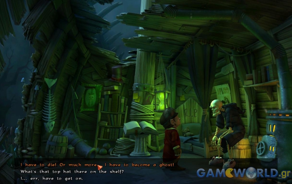 Το Inventory επίσης είναι εξαιρετικό: ενεργοποιείται με την μετακίνηση του κέρσορα στο κάτω μέρος της οθόνης και με οριζόντιο scrolling τσεκάρετε τα αντικείμενα. Αν ένα αντικείμενο μπορεί να συνδυαστεί με κάποιο άλλο θα το γράψει στην οθόνη, συνεπώς ξεχάστε τα adventures στα οποία έπρεπε να δοκιμάσετε κάθε πιθανό συνδυασμό αντικειμένων μέχρι να βρείτε την λύση. Τα περισσότερα puzzles απαιτούν απλά λογική σκέψη και δεν πρόκειται να σας δυσκολέψουν καθόλου. Αν και όποτε κολλήσετε στο παιχνίδι, σπεύστε να ξαναρωτήσετε όλους τους χαρακτήρες της περιοχής και θα οδηγηθείτε σίγουρα στη λύση! Τα γραφικά είναι κορυφαία, με τέλειες φωτοσκιάσεις και το animation ομαλότατο. Σε επίπεδο speech, το voice acting είναι υποδειγματικό με την φωνή του χαβαλετζή Critter να κλέβει την παράσταση. Παρατηρήστε απλά τον ήχο που κάνει όταν θέλει να σας δείξει ότι μια πράξη θα έχει θανατηφόρες συνέπειες για εκείνον για να ξεκαρδιστείτε στα γέλια.