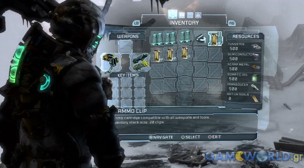Να προσθέσουμε ότι με τα διάφορα parts μπορείτε να κάνετε και όλες τις απαραίτητες αναβαθμίσεις στην στολή σας αυξάνοντας τα αποθέματα οξυγόνου σας, τα hit points σας, την αμυντική σας θωράκιση κτλ. Θα πρέπει να τονίσουμε ότι μπορείτε επίσης να συνθέσετε πυρομαχικά και med packs, με το γεγονός αυτό να επιδρά αρνητικά στον Survival χαρακτήρα του Dead Space 3. Τουλάχιστον, η τεράστια ποικιλία των όπλων έχει ιδιαίτερα θετική επίδραση στο gameplay, καθώς συνεχώς θα πειραματίζεστε με τον εξοπλισμό σας ώστε να έχετε όσο το δυνατόν καλύτερα αποτελέσματα στο πεδίο της μάχης, όπως σε ένα Action RPG για παράδειγμα.